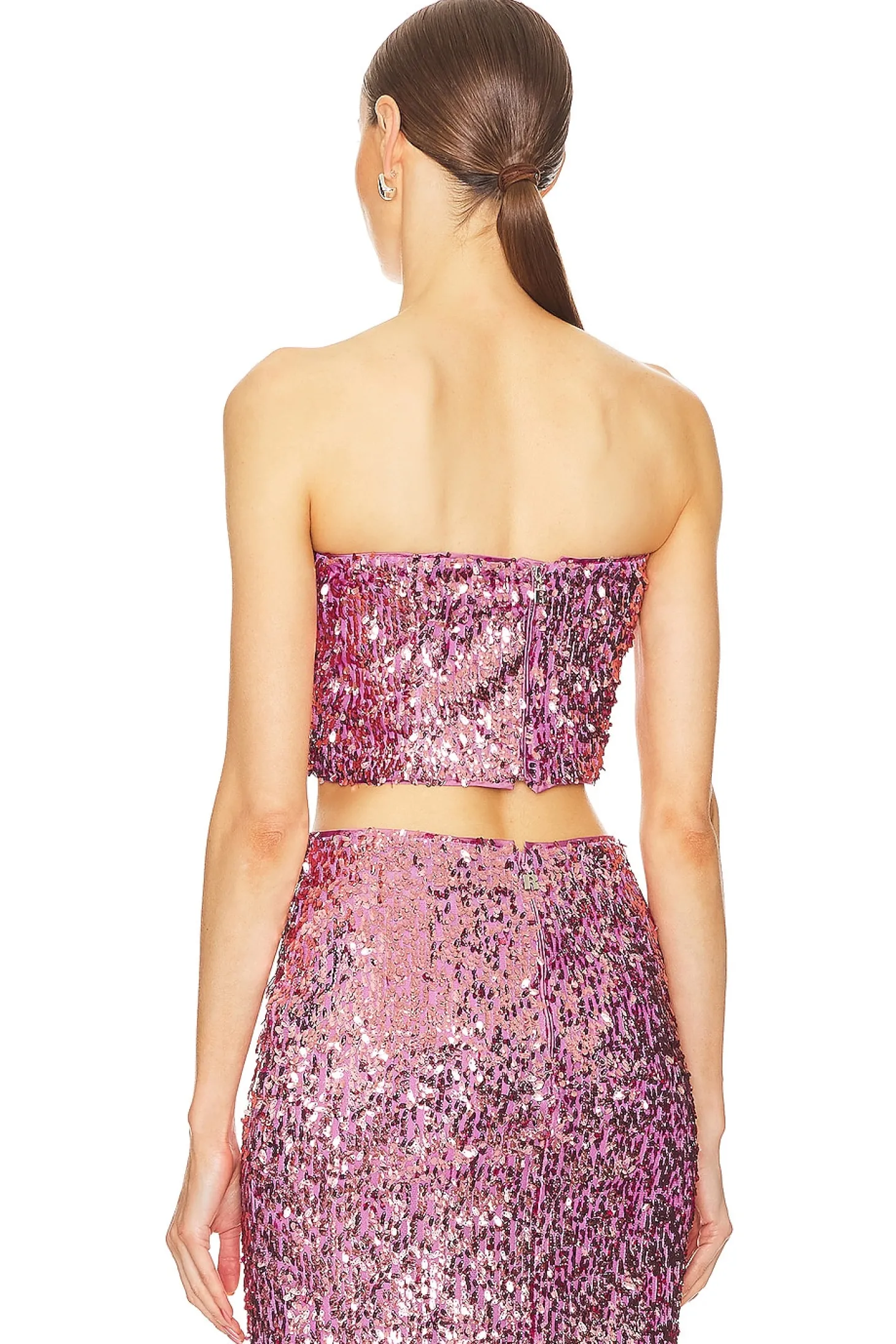 Self: 100% recycled polyester Lining: 88% polyester 12% spandex.Made in China.Dry clean only.Back zipper closure.Sequin-embellished fabric.Item not sold as set