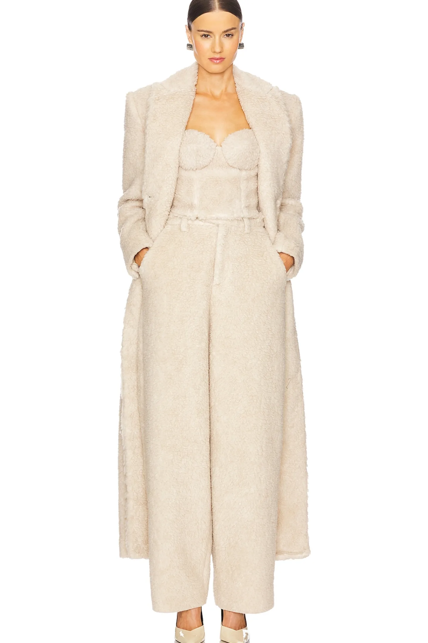 Self: 60% polyester 40% wool Lining: 100% viscose.Made in Italy.Dry clean only.Double breasted closure.3-pocket design.Faux button cuffs.Sherpa exterior with padded shoulders.Item not sold as set