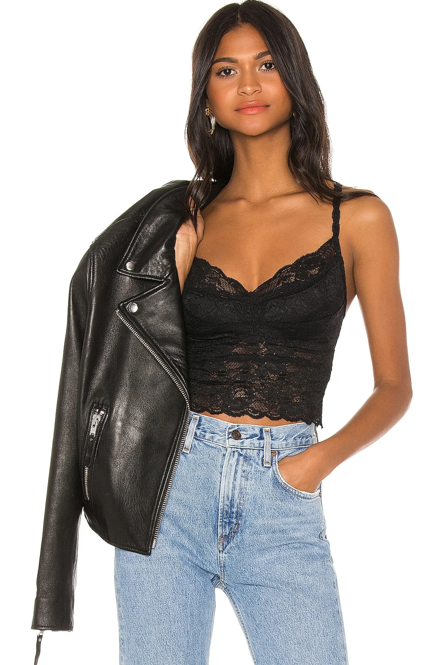 Self: 93% polyamide 7% elastane Lining 95% cotton 5% elastane.Made in Italy.Hand wash cold. Adjustable shoulder straps.Lace fabric.Stretch fit