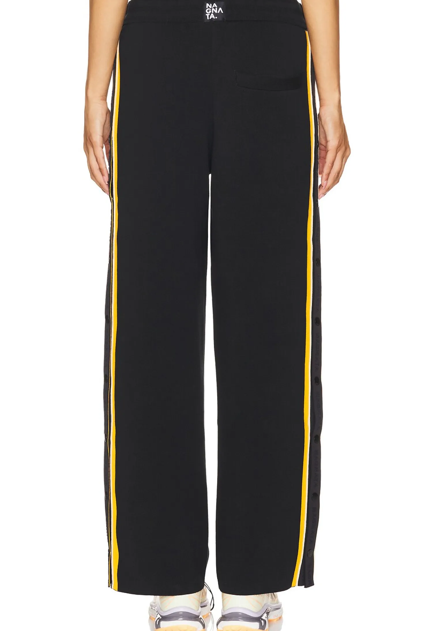70% organic cotton 30% nylon.Made in China.Hand wash.Pull-on styling with elastic waistband.Side snap button closure.22" at the knee narrows to 20" at the leg opening