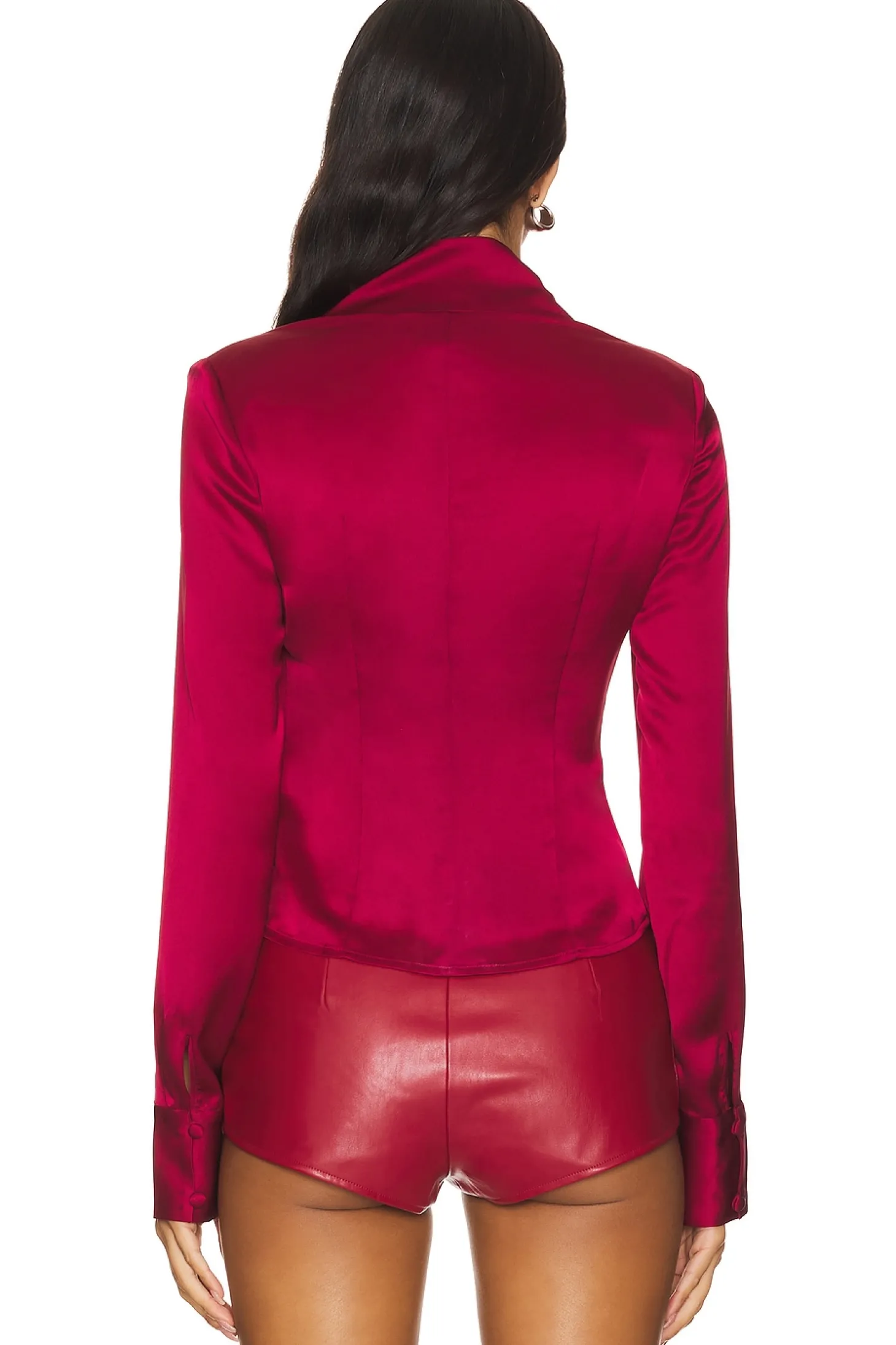 100% silk.Made in China.Dry clean only.Front button closure.Button cuffs.Silk fabric