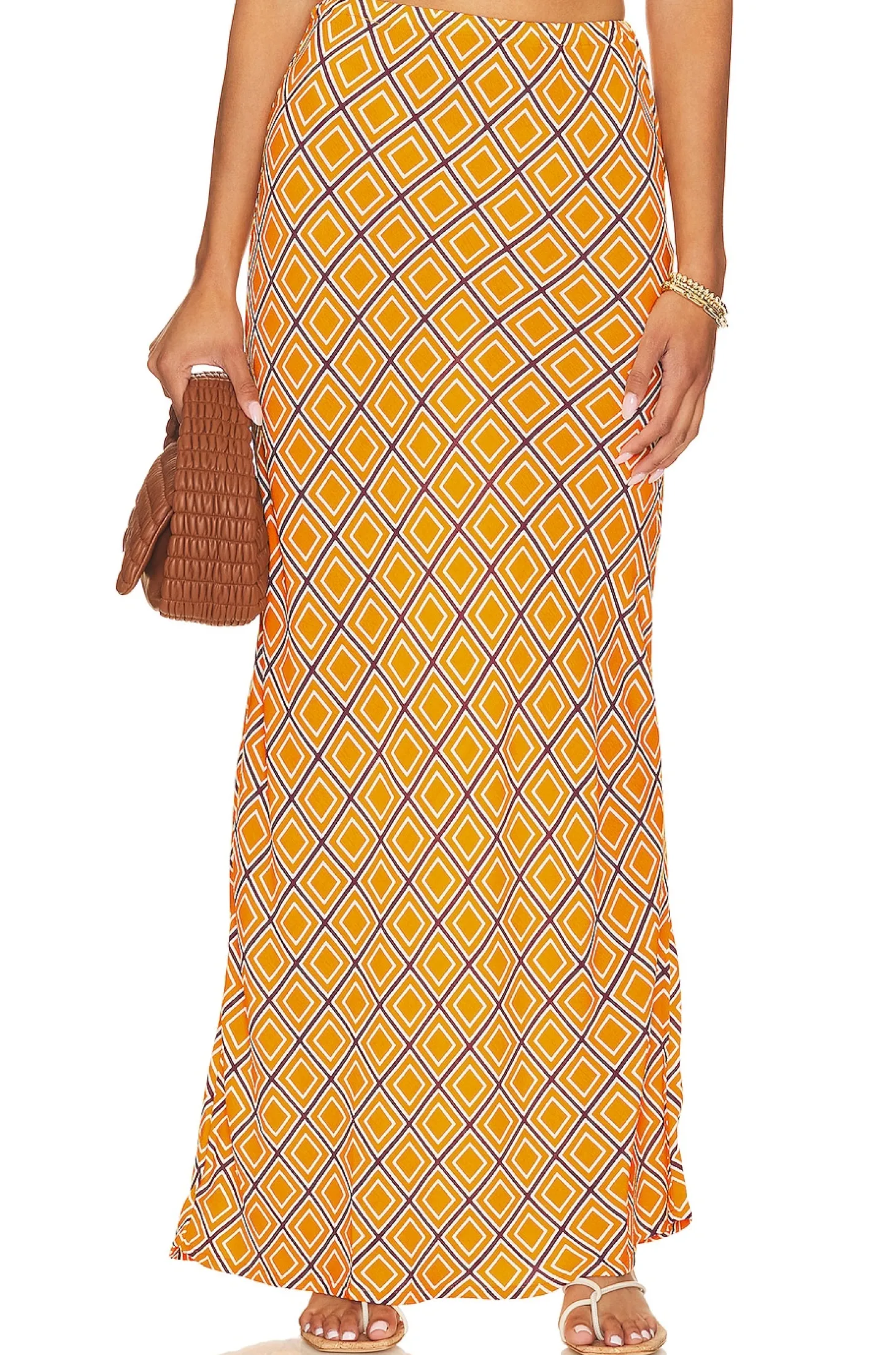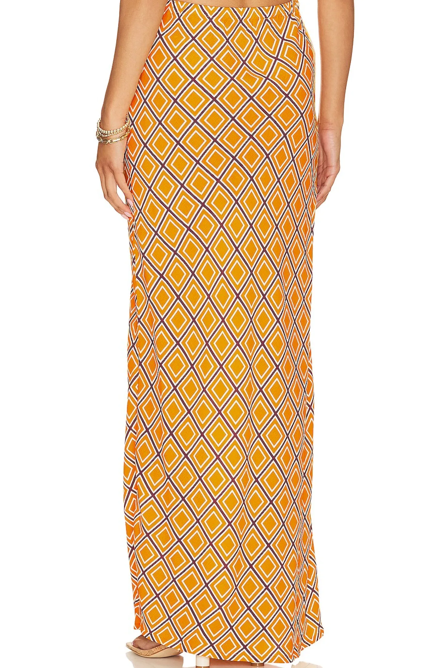 100% rayon.Made in Indonesia.Hand wash.Unlined.Pull-on styling with elastic waistband.Crepe fabric.Item not sold as a set.Skirt measures approx 44" in length