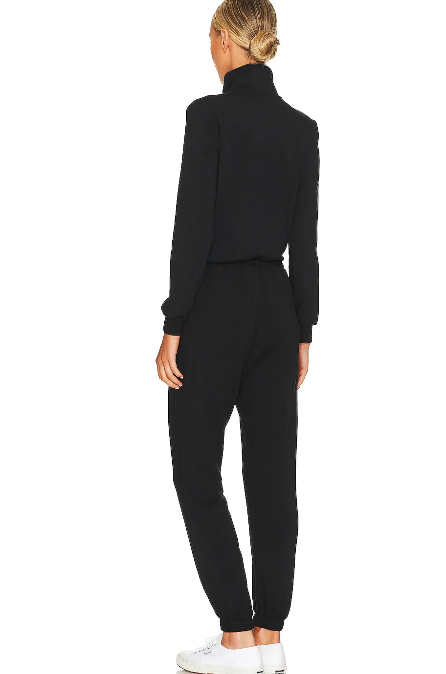 65% modal 27% polyester 8% spandex.Made in USA.Machine wash.Partial front zipper closure.Drawstring waist tie detail.Side slant pockets.Elasticized cuffs Jersey and fleece fabric