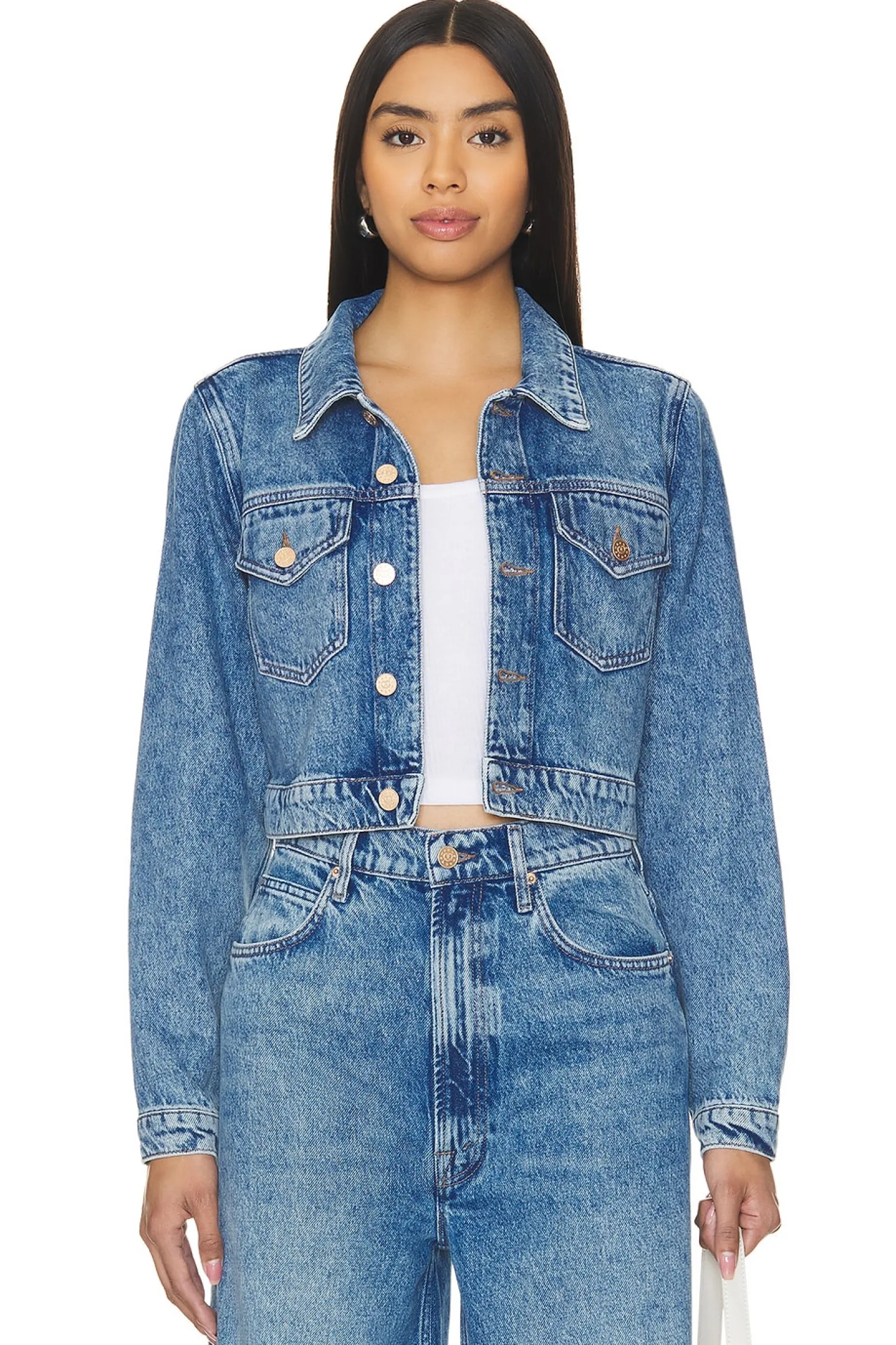 59% cotton 41% lyocell.Made in Turkey.Machine wash.Front button closure.Flap pockets at breast.Cropped fit
