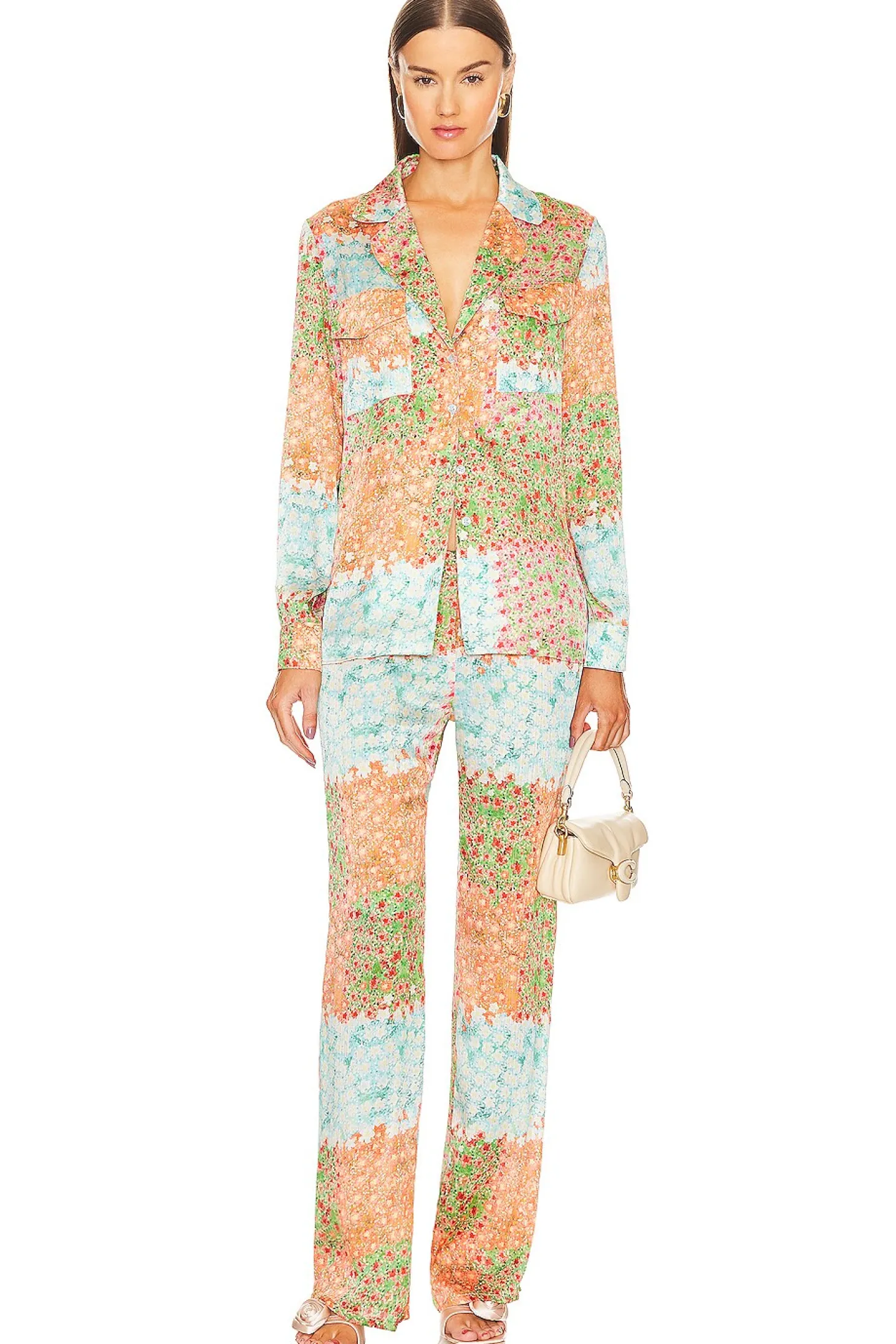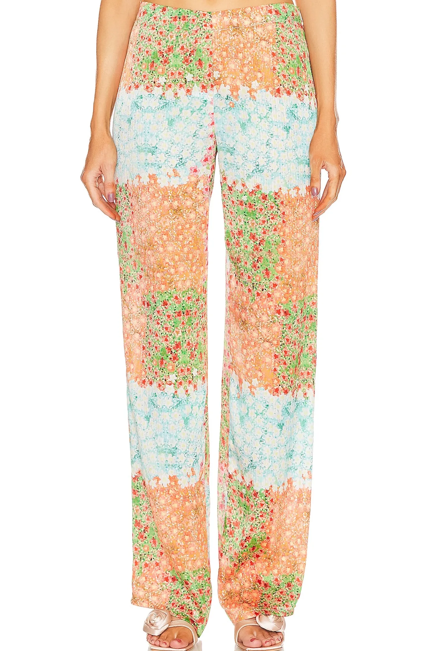 Polyester blend.Imported.Hand wash recommended.Pull-on styling with elastic waistband.Lightweight satin fabric.Item not sold as a set.20" at the knee and 20" at the leg opening