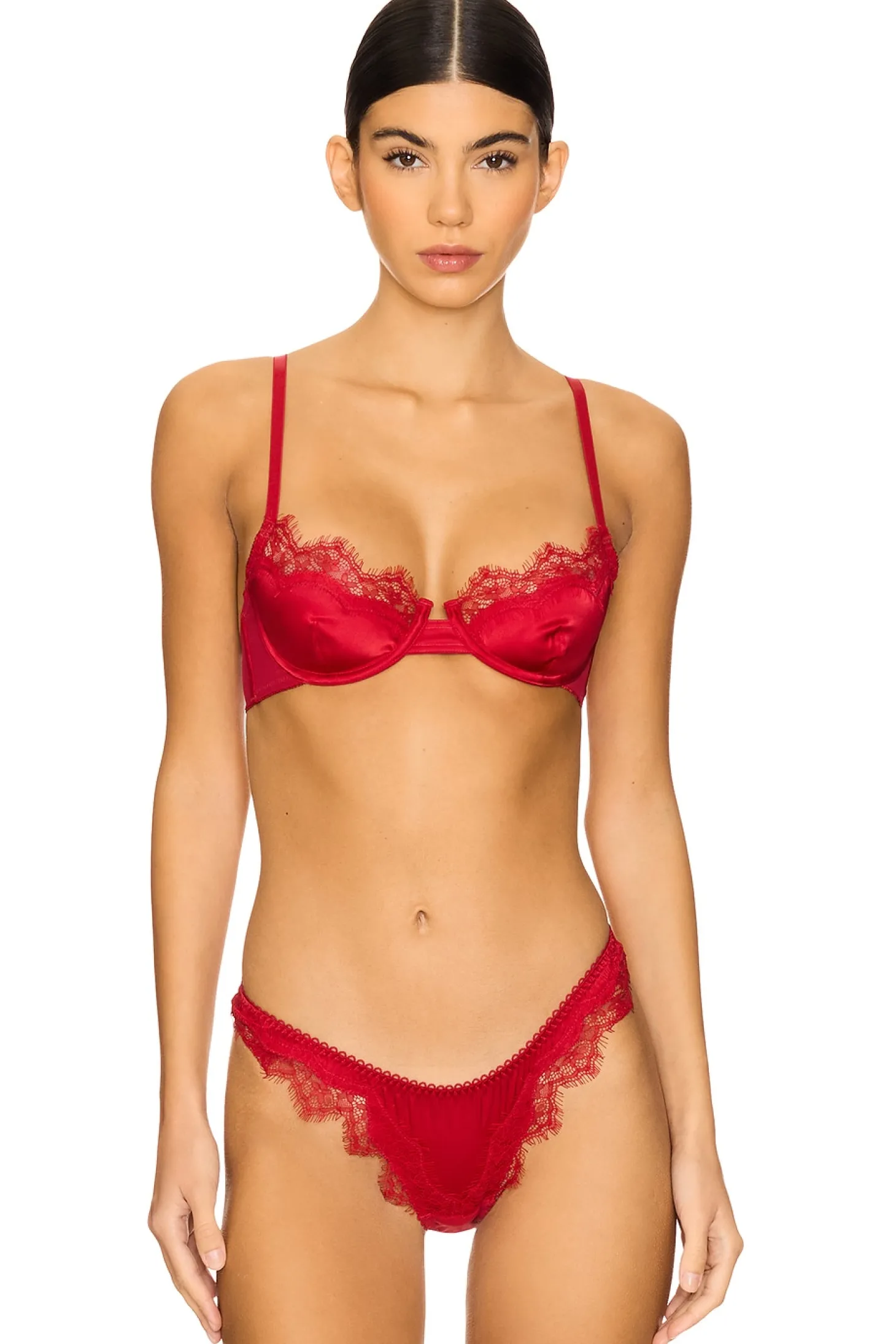 46% polyester 43% polyamide 11% elastane.Made in China.Hand wash.Unpadded underwire cups.Back strap with hook and eye closure.Adjustable shoulder straps.Satin fabric with lace trim.Item not sold as a set
