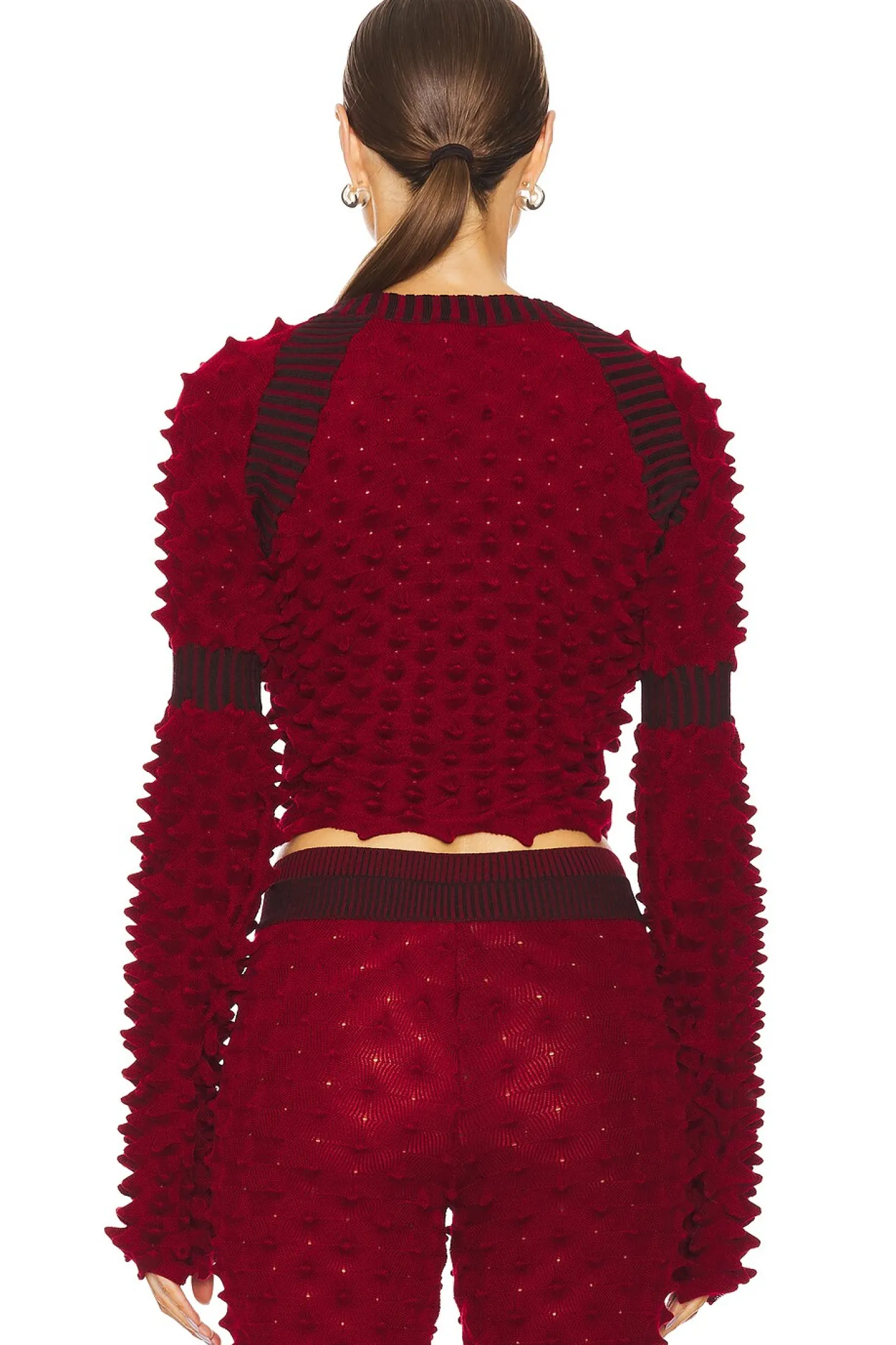 89% merino wool 11% polyamide.Made in Italy.Hand wash.Pull-on styling.3D textured design fabric.Midweight ribbed knit fabric Item not sold as a set