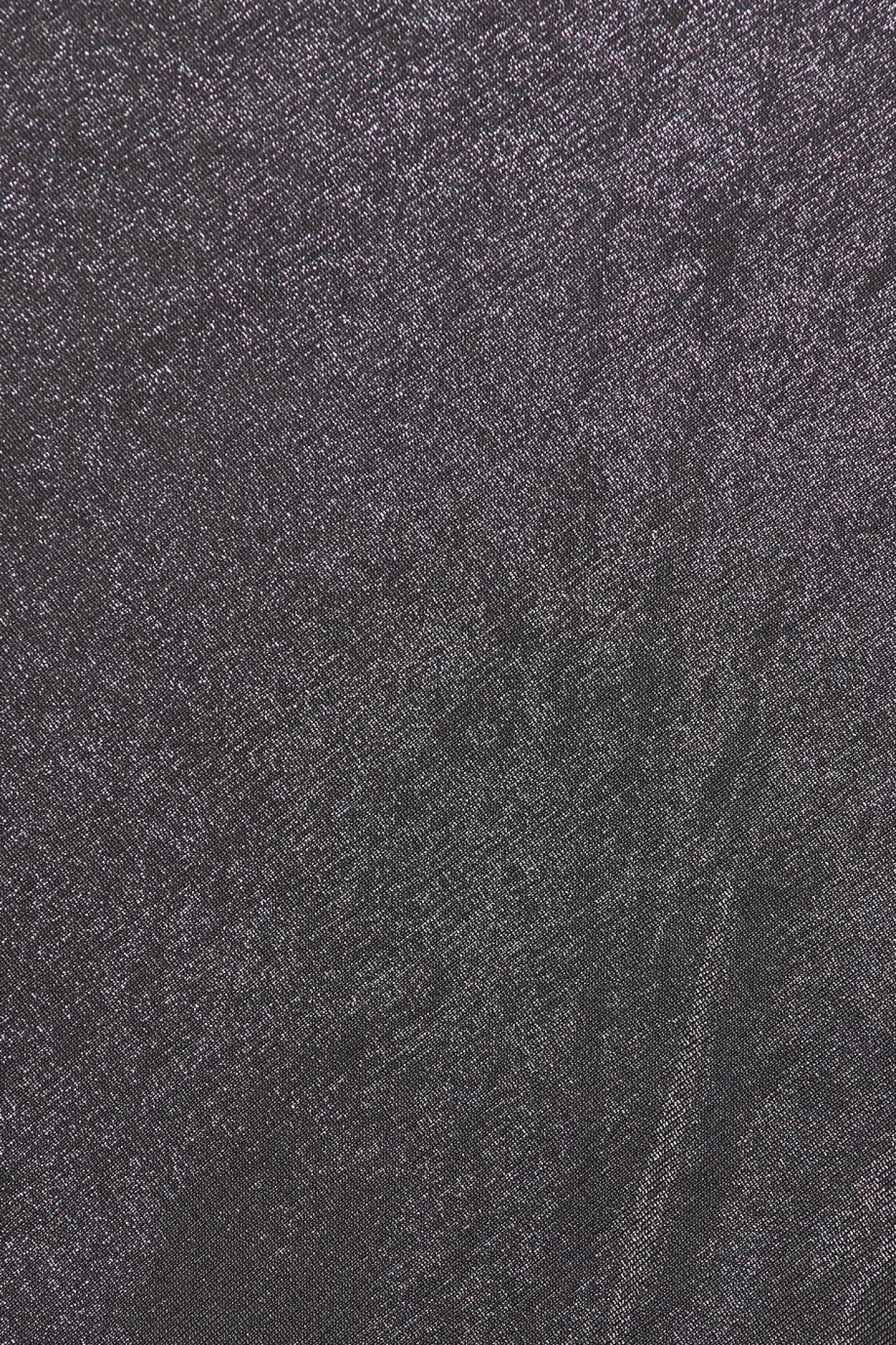 95% polyester 5% spandex.Made in China.Hand wash.Partial hidden back zip closure.Optional waist belt .Ruffled lame fabric.style runs large, size down
