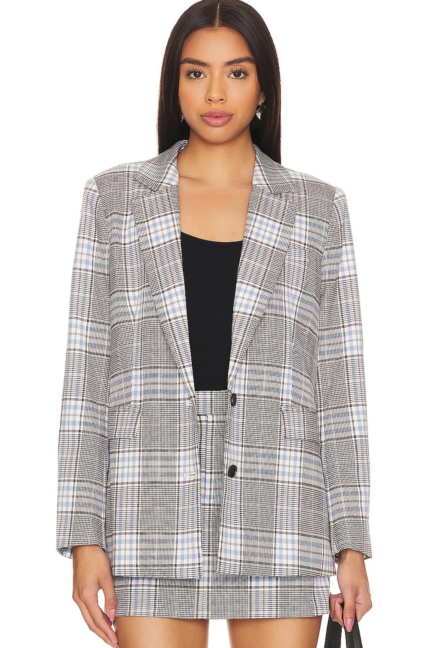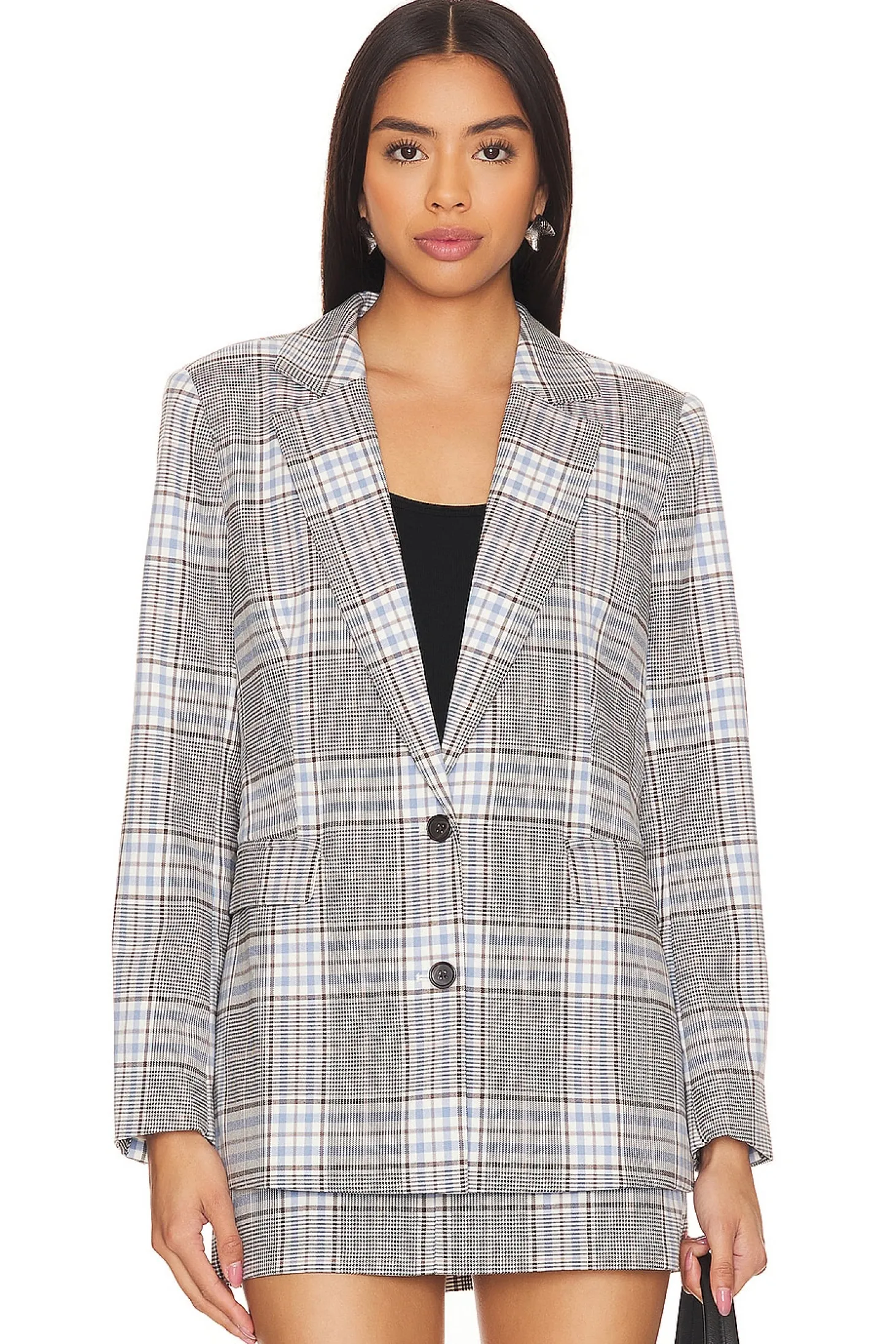 Self: 65% polyester 33% viscose 2% spandex Lining: 100% polyester.Made in China.Dry clean only.Front button closure.3-pocket design.Padded shoulders.Button cuffs.Midweight twill fabric Item not sold as a set