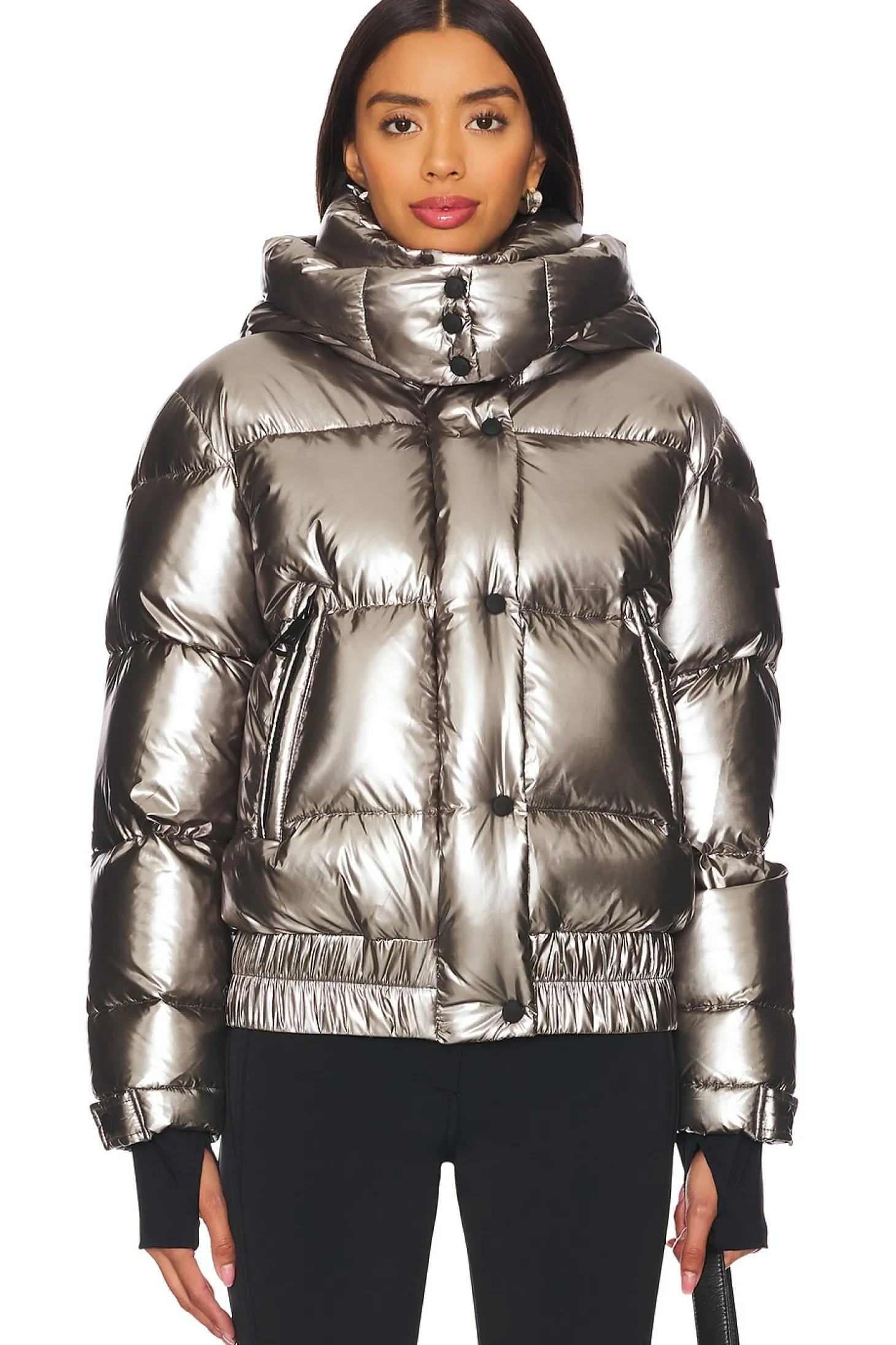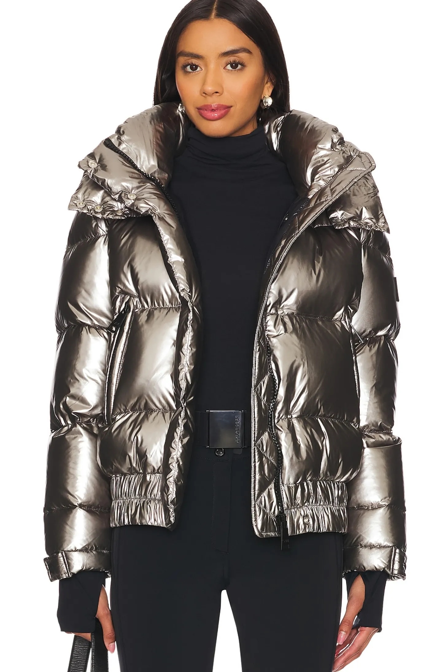 Self & Lining: 100% nylon Filling: 90% duck down 10% feathers.Made in Vietnam.Spot clean only.Hidden front zip with snap closure.Attached hood with snap closure Front zip pockets and snap cuffs.Heavyweight gabardine fabric with thumbhole design