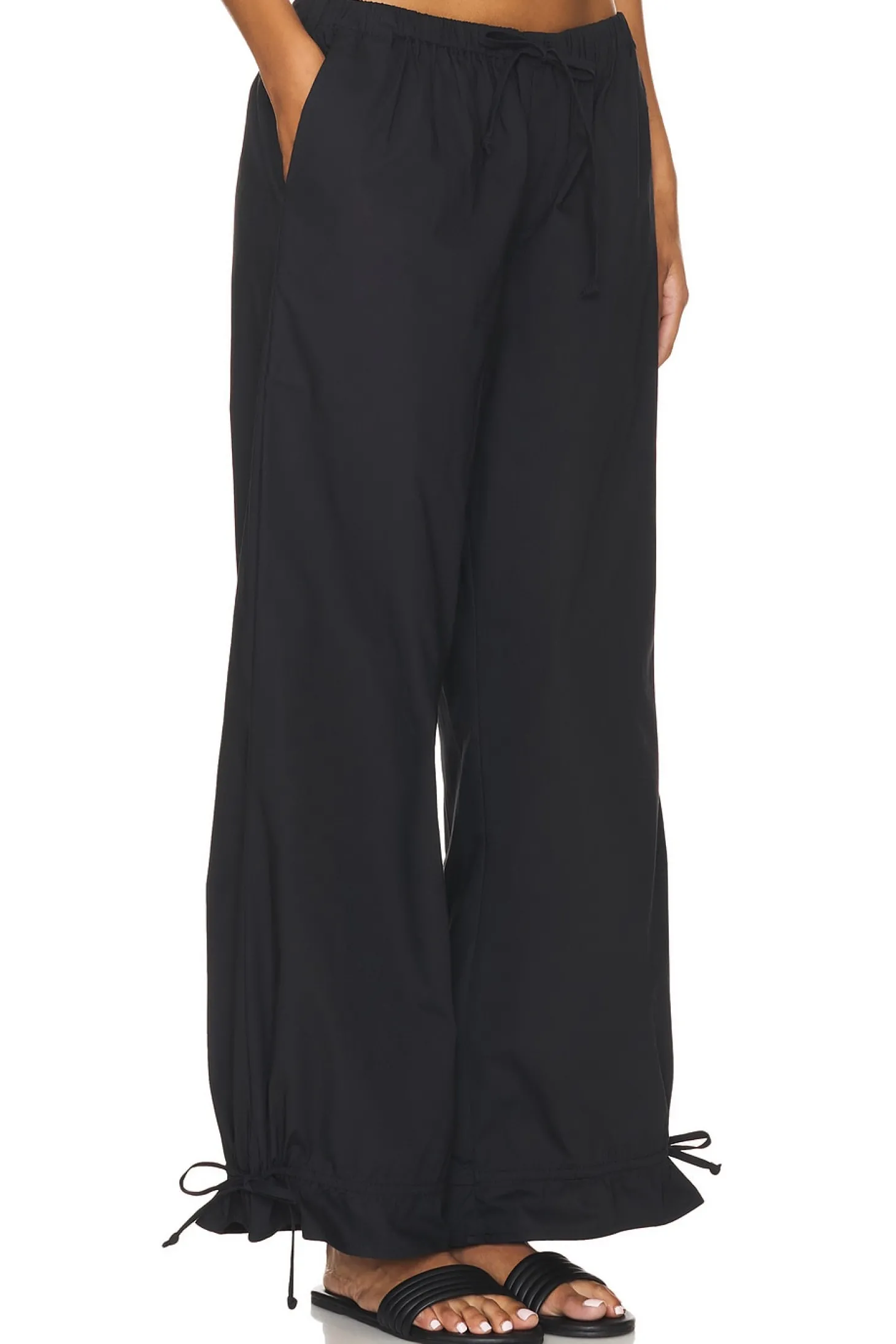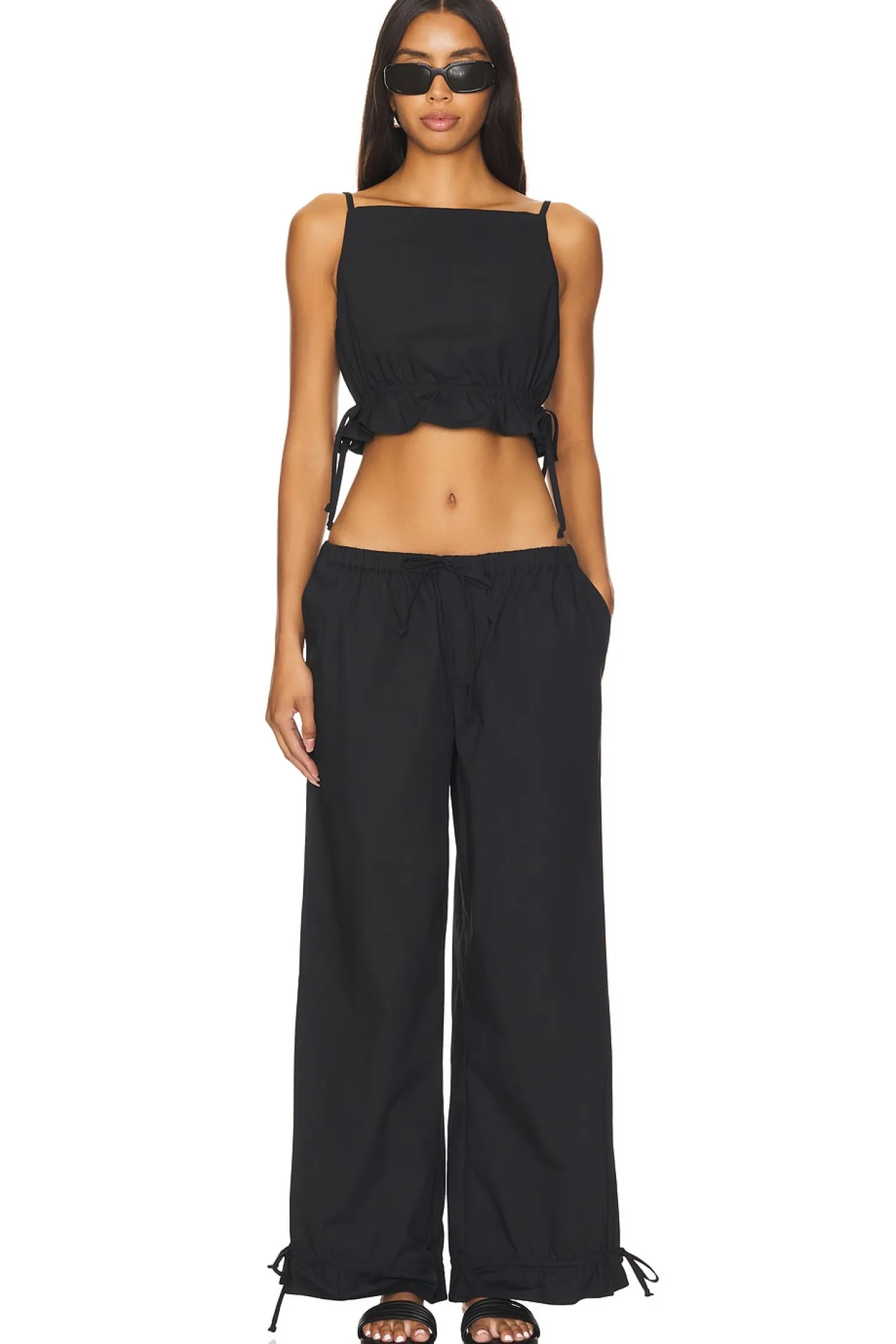 98% cotton 2% elastane.Made in China.Hand wash cold.Drawstring closure.Side seam pockets.Tie detail at cuffs.Item not sold as a set.20" at the knee and 20" at the leg opening