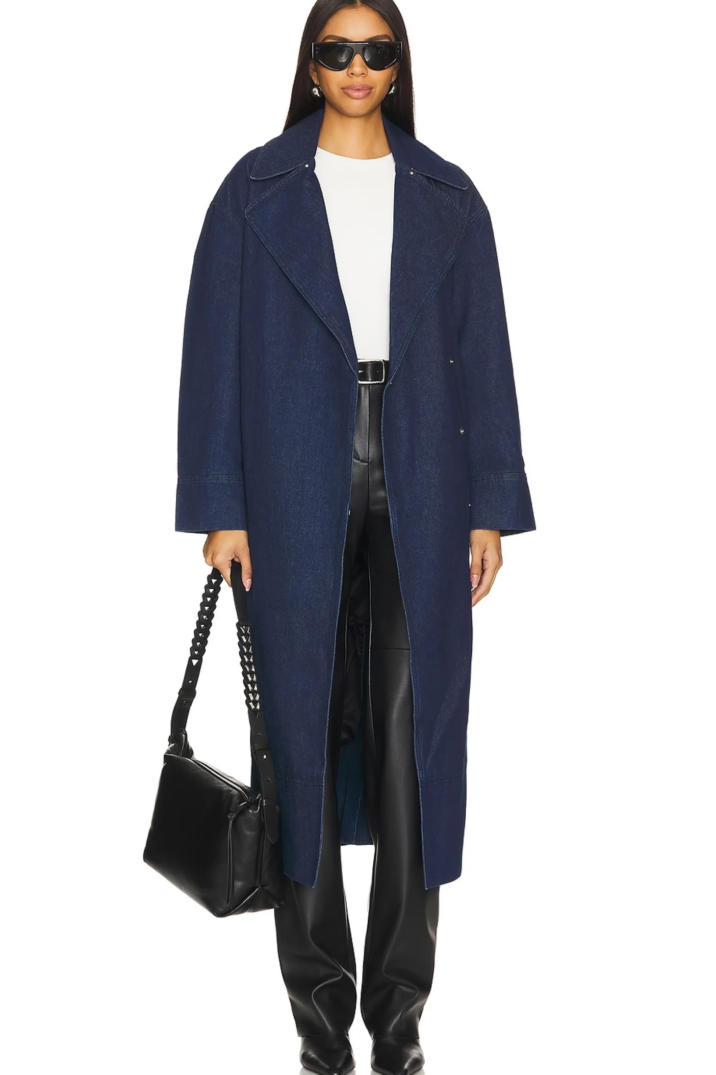 Self: 100% cotton Lining: 100% recycled polyester.Made in China.Dry clean.Front button closures.Detachable waist belt