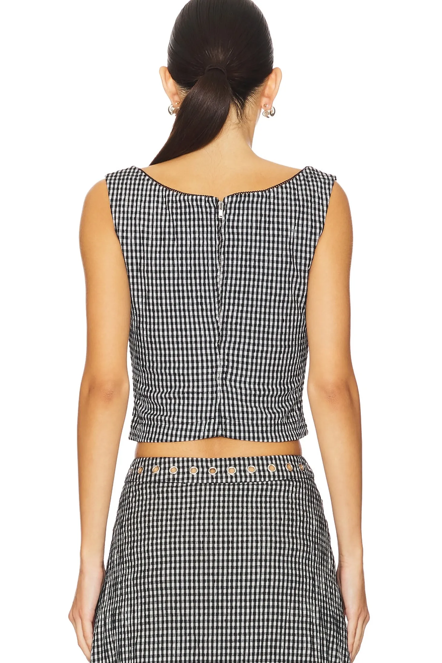 Self: 60% cotton 38% polyester 2% spandex Lining: 97% cotton 3% spandex.Made in China.Dry clean only.Hidden back zipper closure.Corset design with V-neckline.Lace trim and front bow detail.Seersucker fabric Item not sold as a set