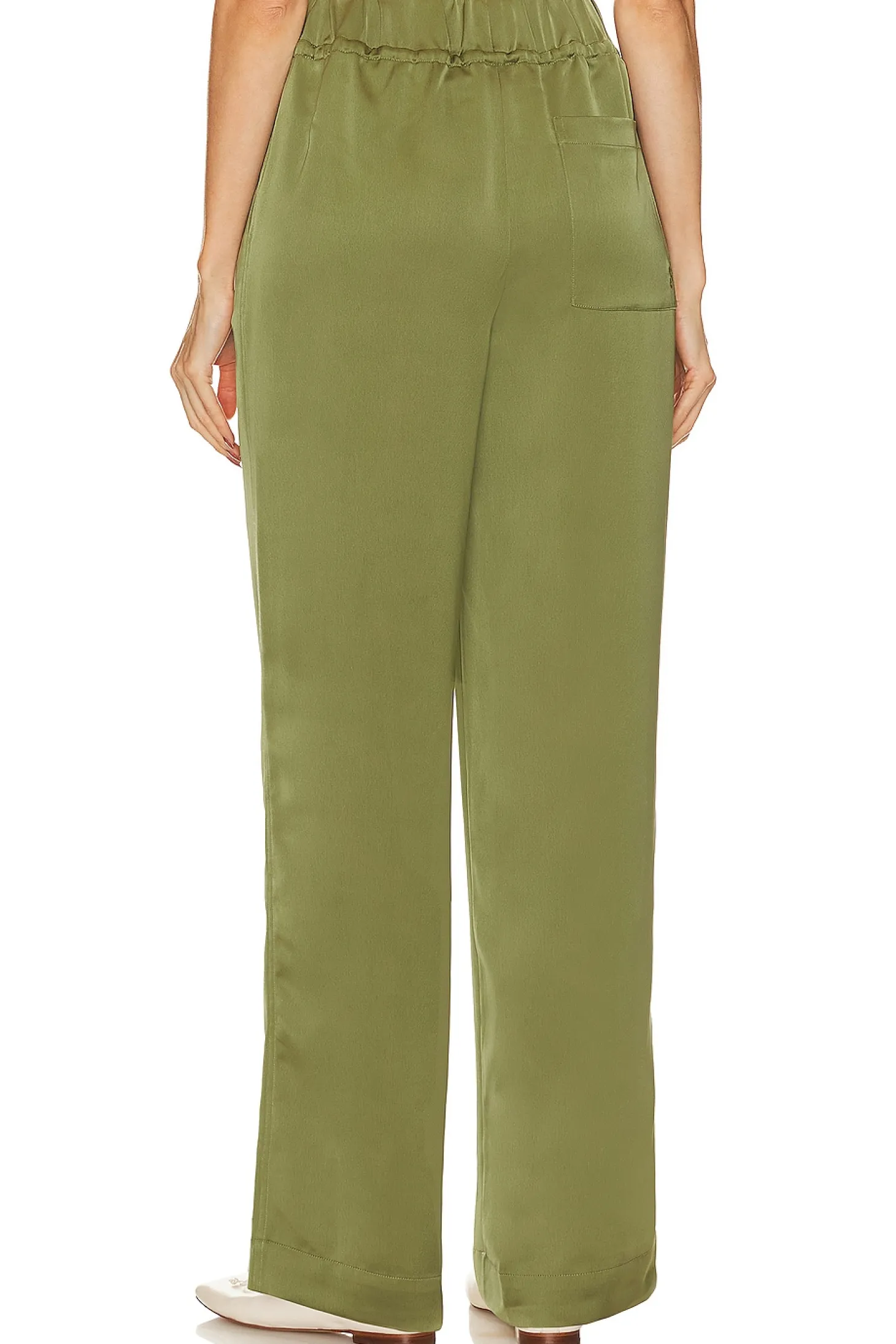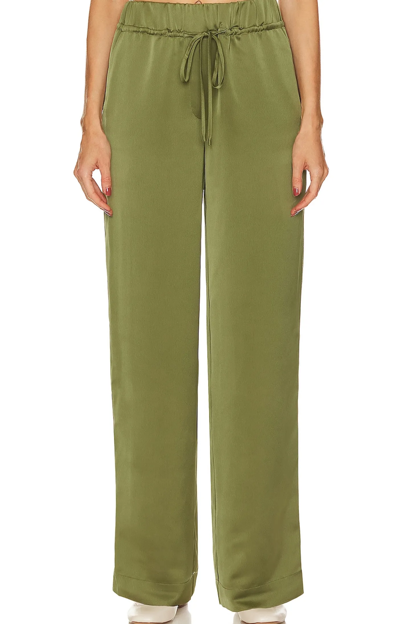 100% polyester.Made in China.Hand wash.Pull-on styling with drawstring elastic waistband.Side slip pockets.Singular patch pocket at back.Item not sold as set.18" at the knee and 18" at the leg opening
