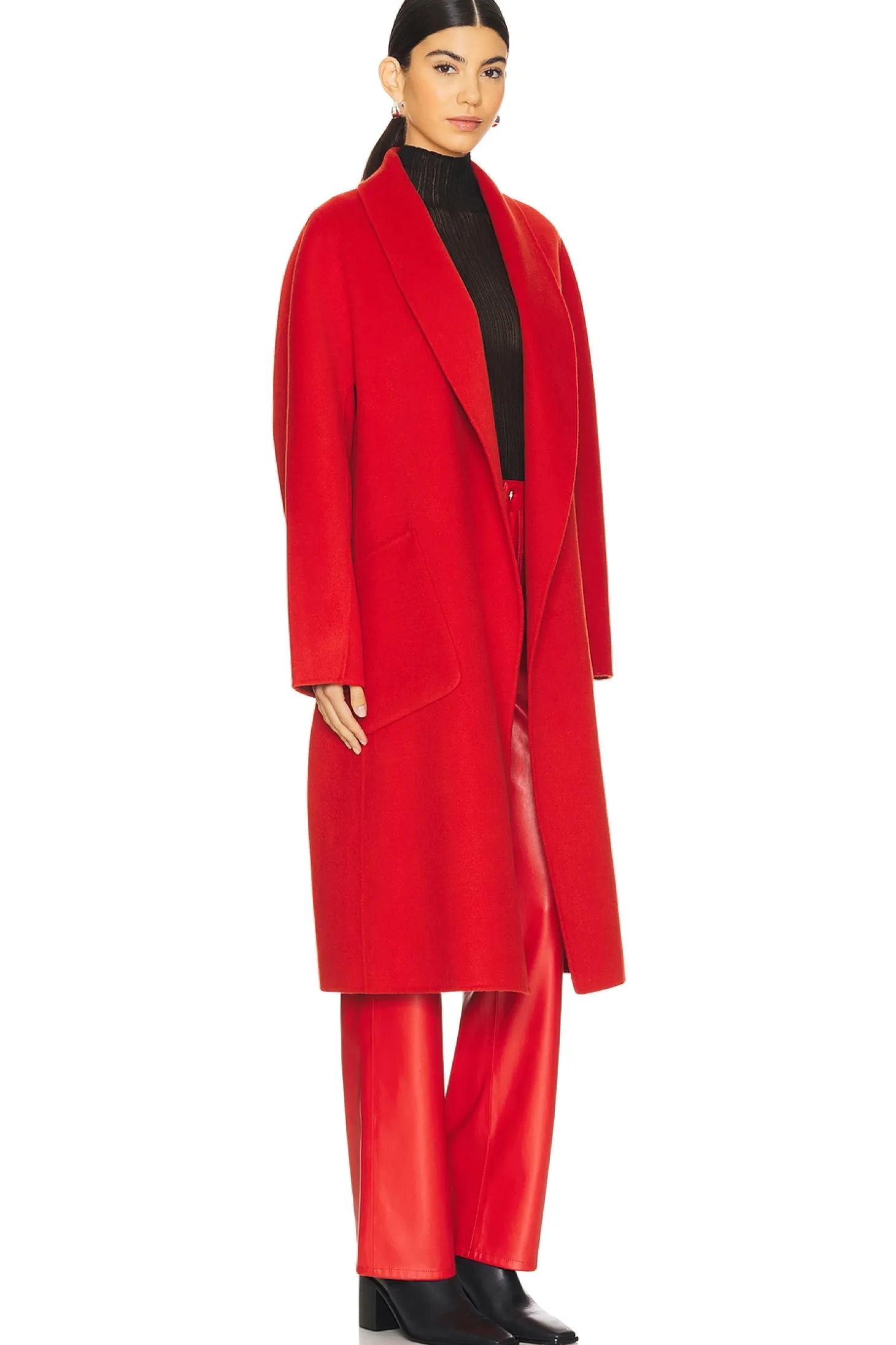 55% wool 45% polyester.Made in China.Dry clean only.Open style.Front pockets.Melton fabric