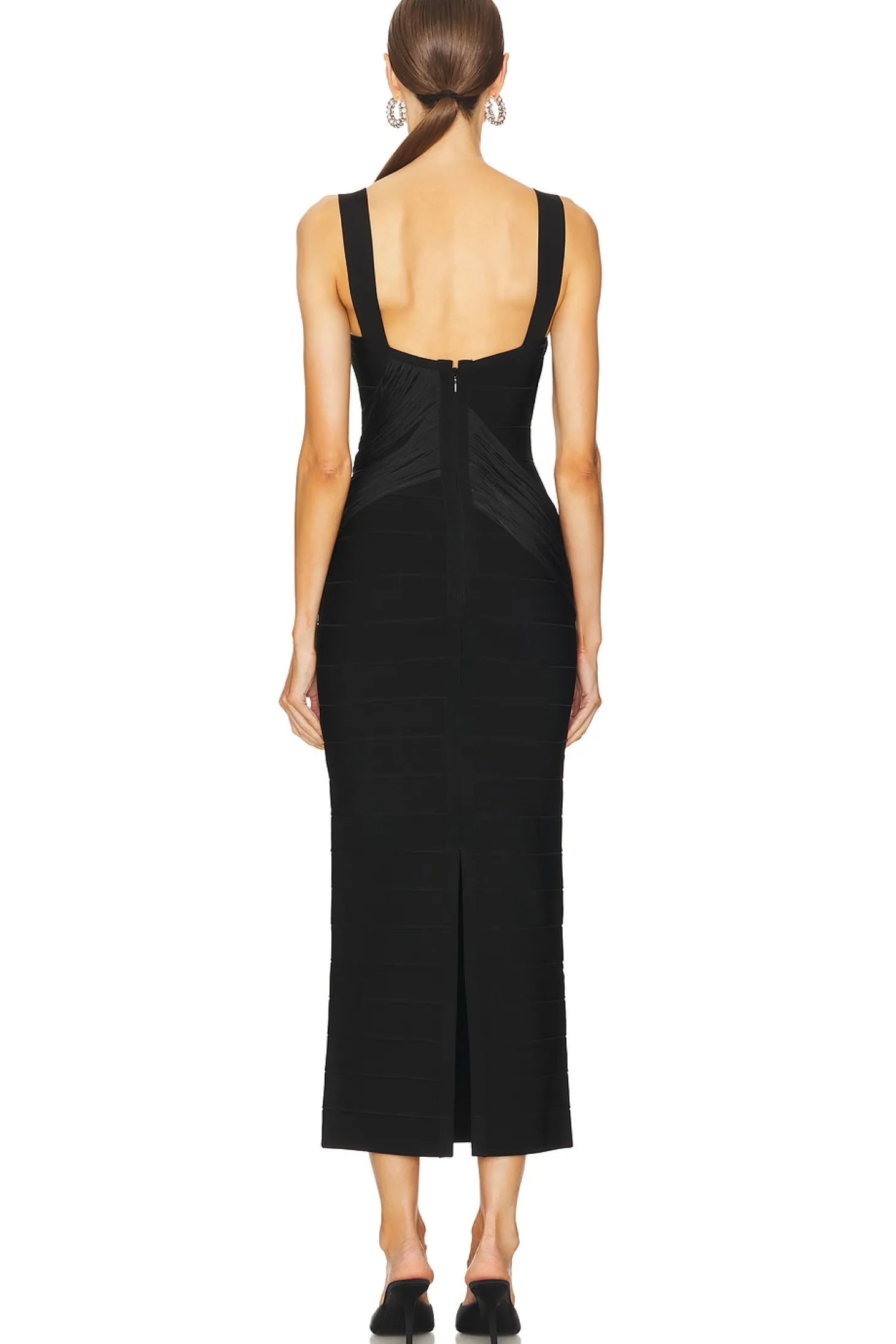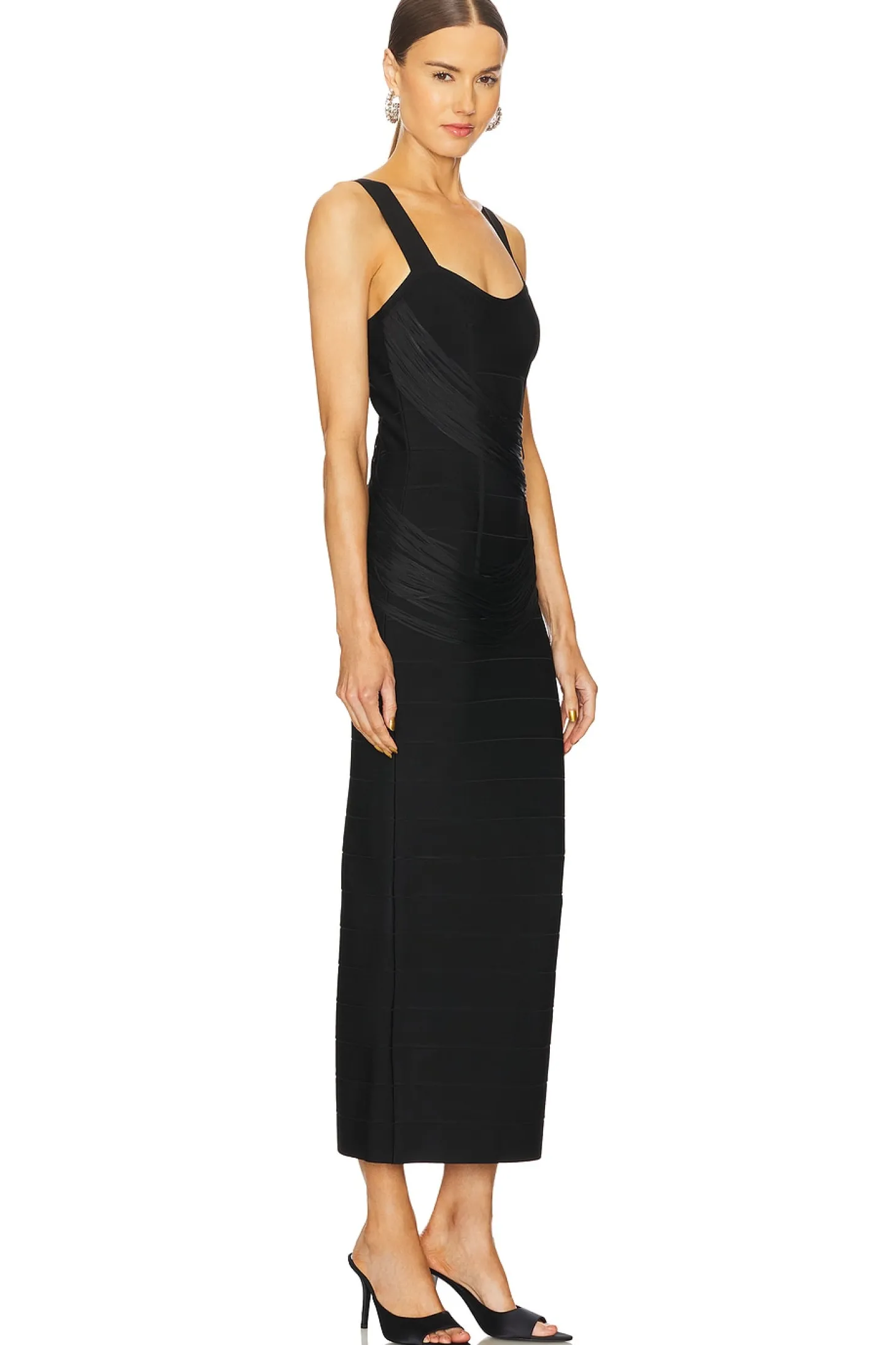 Self: 90% recycled rayon 9% nylon 1% spandex Contrast: 100% polyester.Made in China.Dry clean.Unlined.Hidden back zip closure.Draping lace fringe.Ponte fabric with back vent