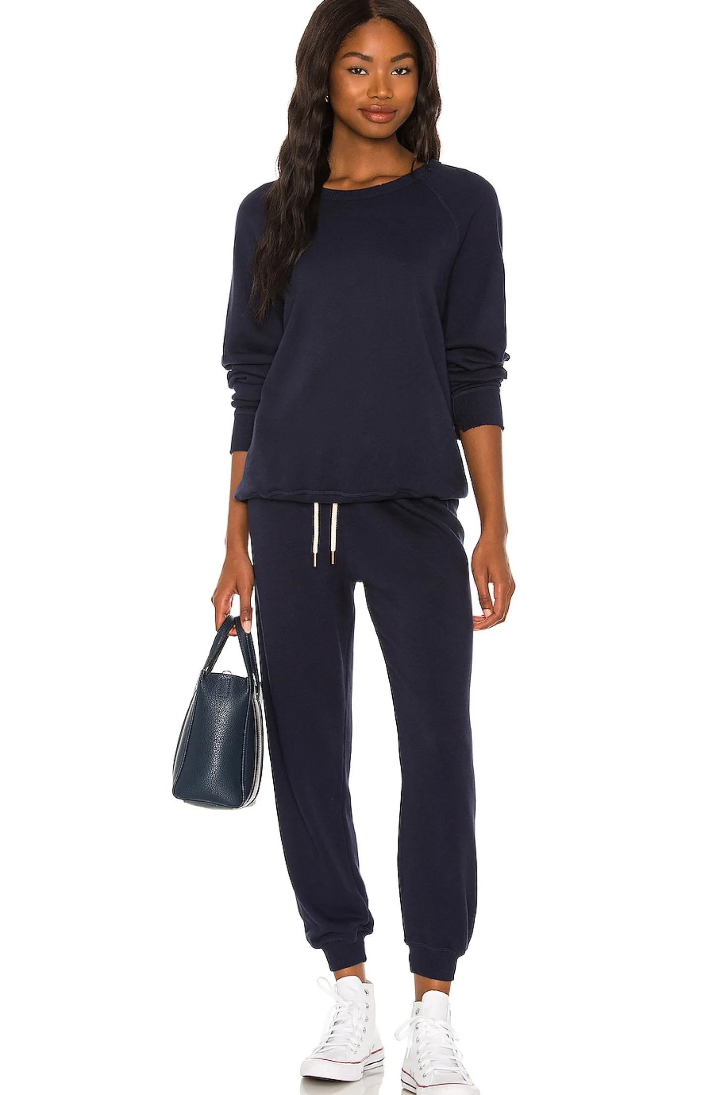 100% cotton.Made in U.S.A..Ribbed neckline, hem and cuffs.Fleece fabric.Item not sold as a set.Machine wash cold