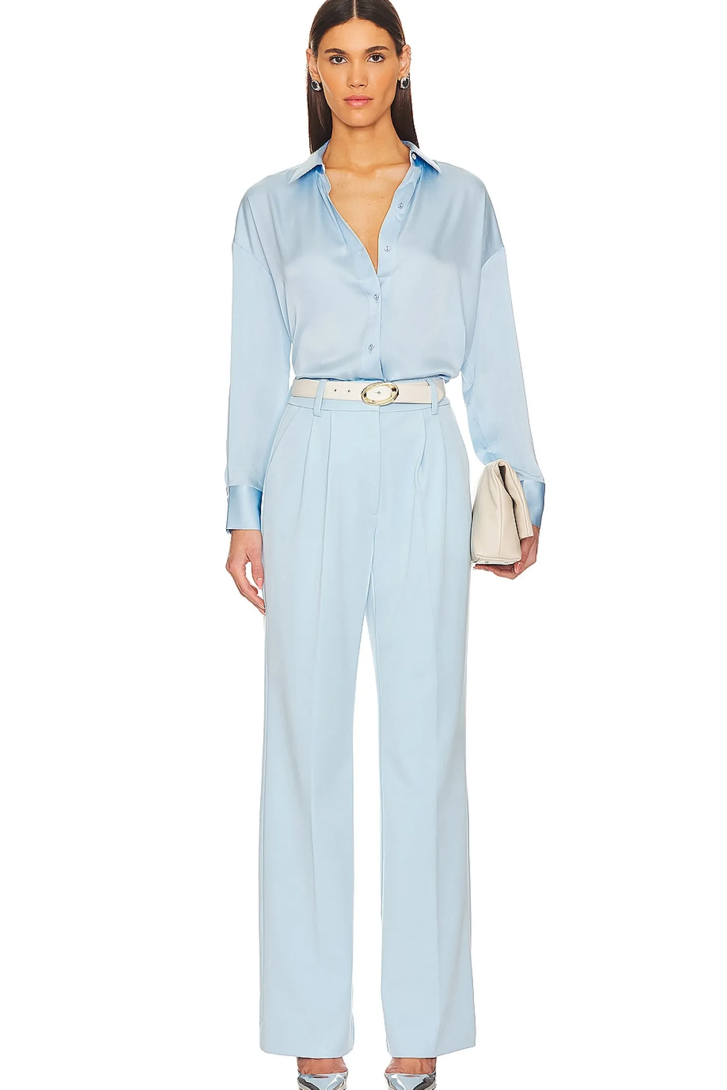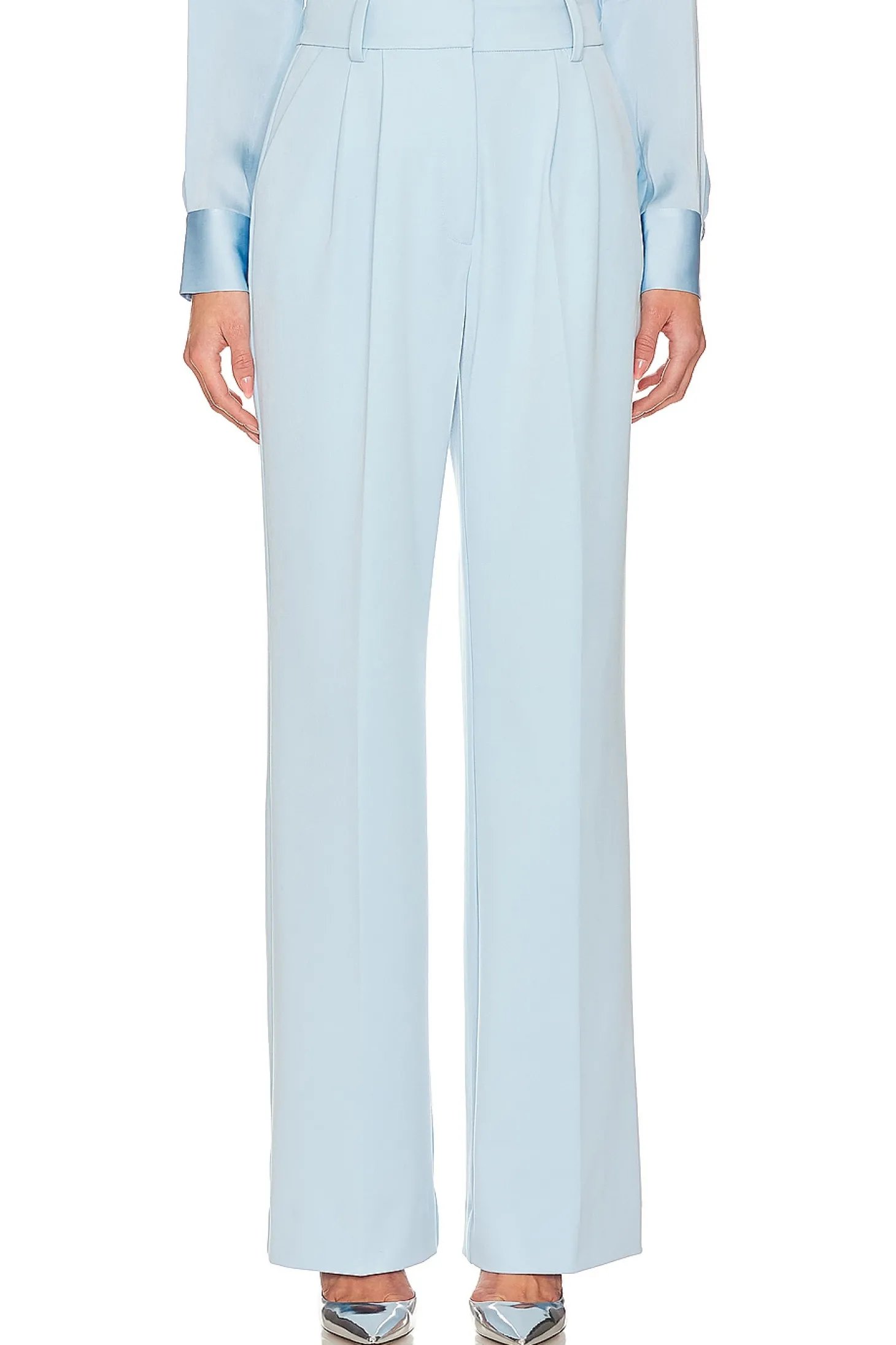Self: 63% polyester 32% rayon 5% elastane Lining: 100% cotton.Made in China.Machine wash.Zip fly with dual hook closure.Side seam pockets with dual faux welt pockets at back.Midweight twill fabric with pintuck detailing at front.Item not sold as a set.20" at the knee and 20" at the leg opening Size 2 measures approx 25" in waist circumference