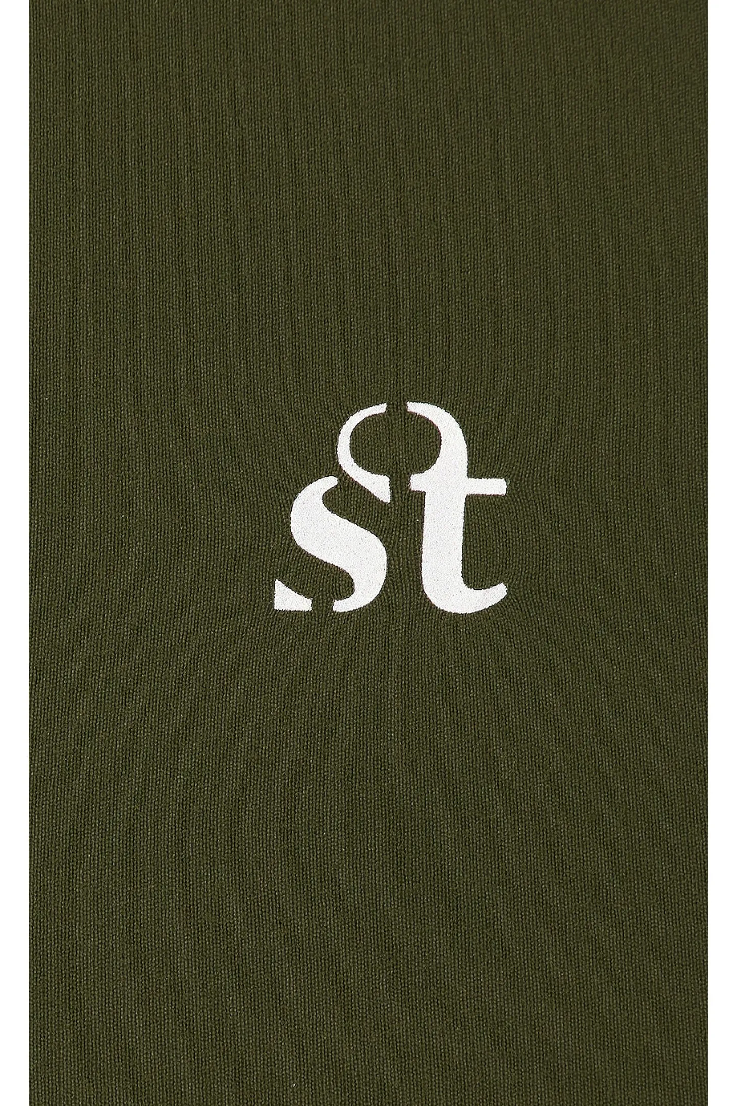 75% nylon 25% spandex.Made in USA.Machine wash.Pull-on styling with wide elastic waistband.Jersey fabric with lace-up detail at waistband.Item not sold as set