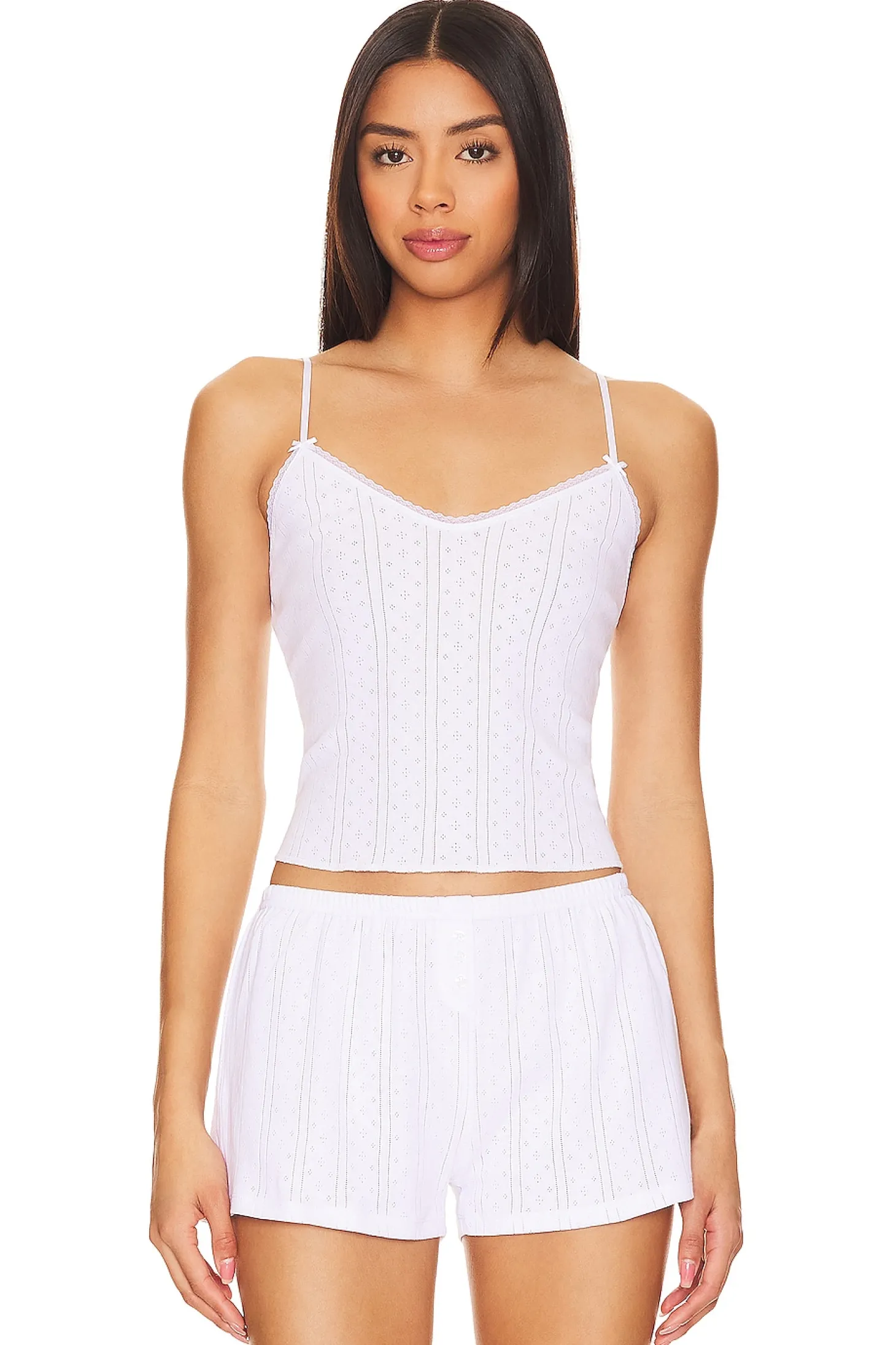 100% GOTS Certified Organic Cotton.Imported.Hand wash recommended.Petit bows at shoulder straps.Adjustable shoulder straps.Lightweight pointelle knit fabric with lace trims.Item not sold as a set