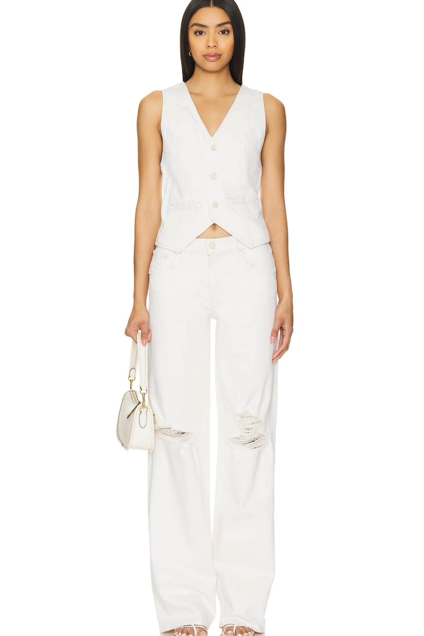 98% cotton 2% elastane.Made in USA.Machine wash.Front button closure.Front welt pockets.Item not sold as a set