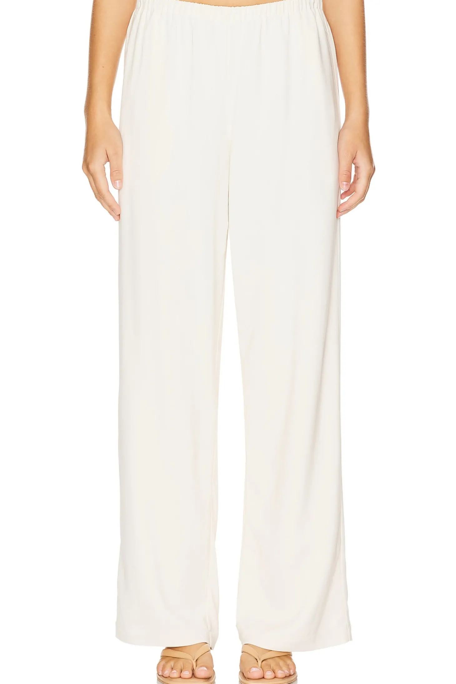Self: 97% viscose 3% spandex Lining: 100% cotton.Made in China.Dry clean only.Pull-on styling with elastic waistband.Side slit pockets.Crepe fabric.22" at the knee and 22" at the leg opening