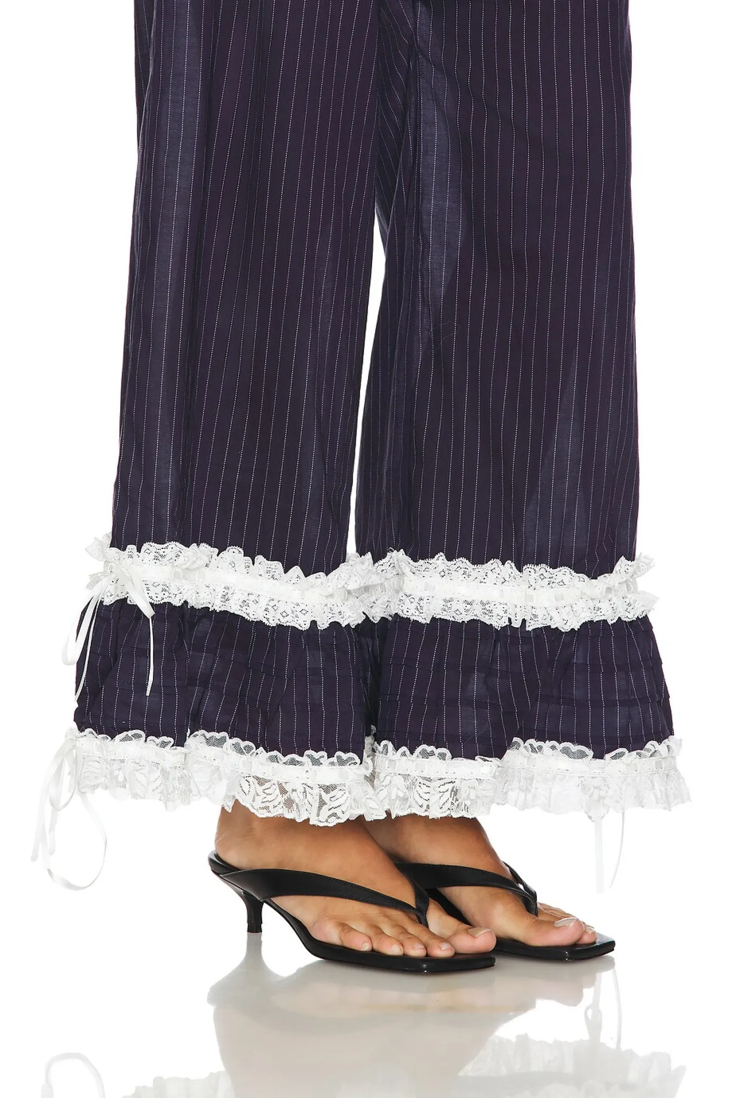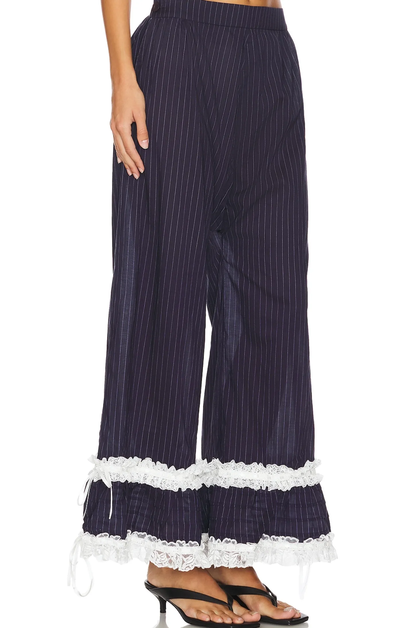 100% cotton.Made in China.Machine wash.Side button closures.Lace hem with drawstring.Poplin fabric