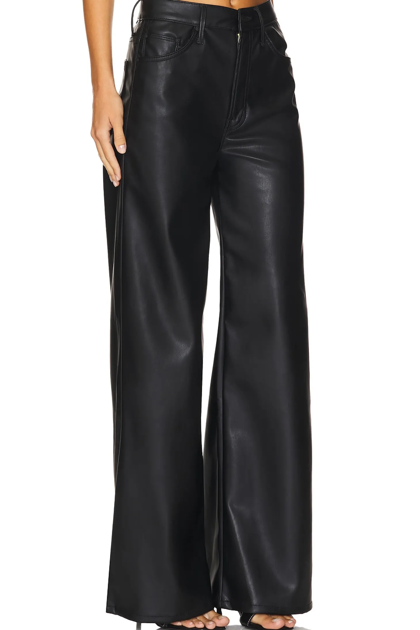 Self 1: 100% polyurethane Self 2: 100% polyester.Made in USA.Hand wash.Zip fly and button closure.5-pocket design.Faux leather.23" at the knee breaks to 26" at the leg opening