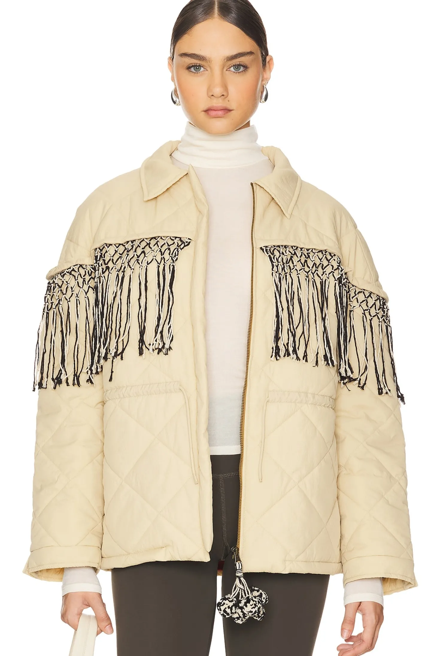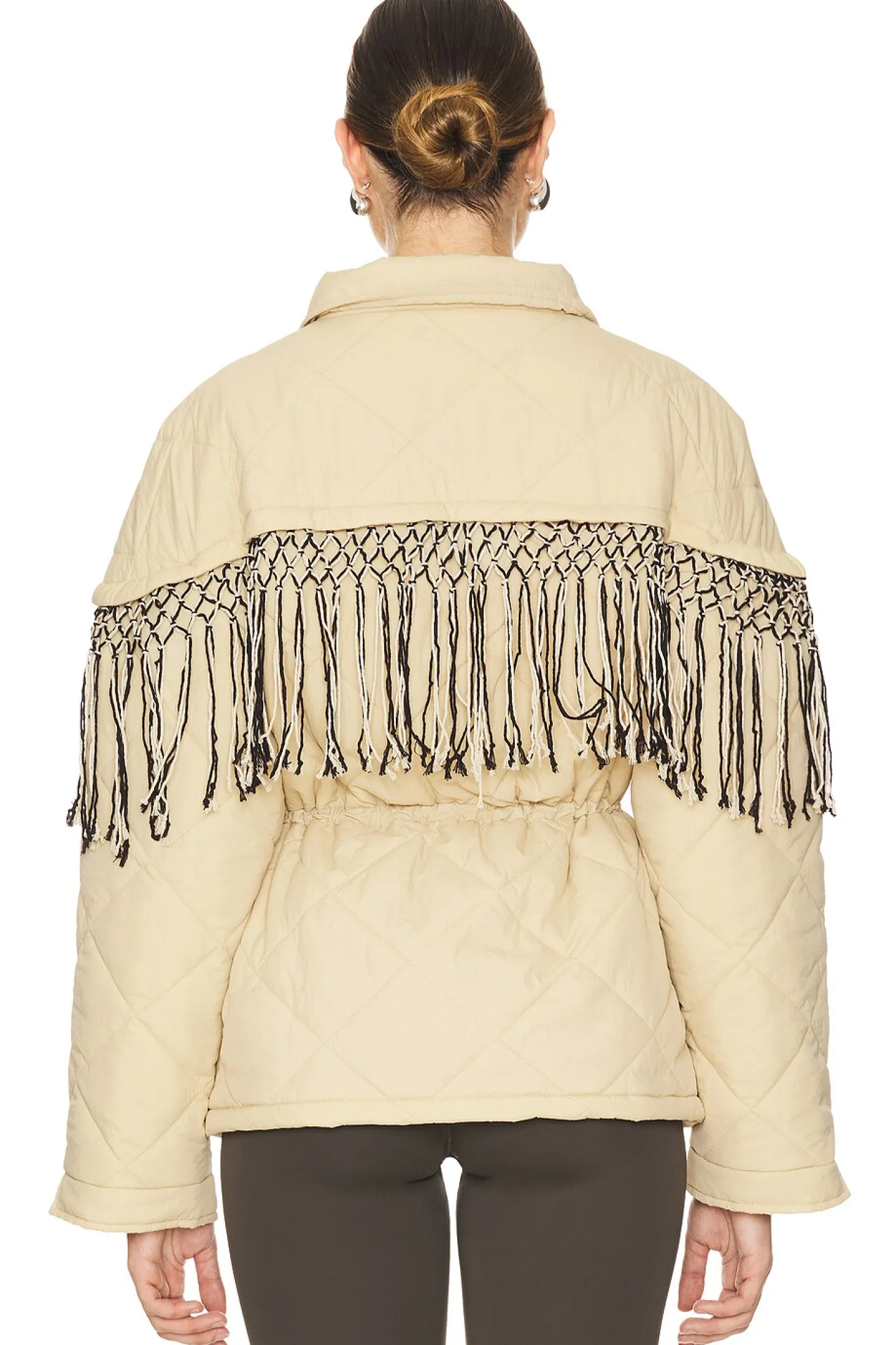 Ripstop textile.Imported.Machine wash recommended.Front zipper closure.Fringe detail at front and back.Midweight ripstop fabric