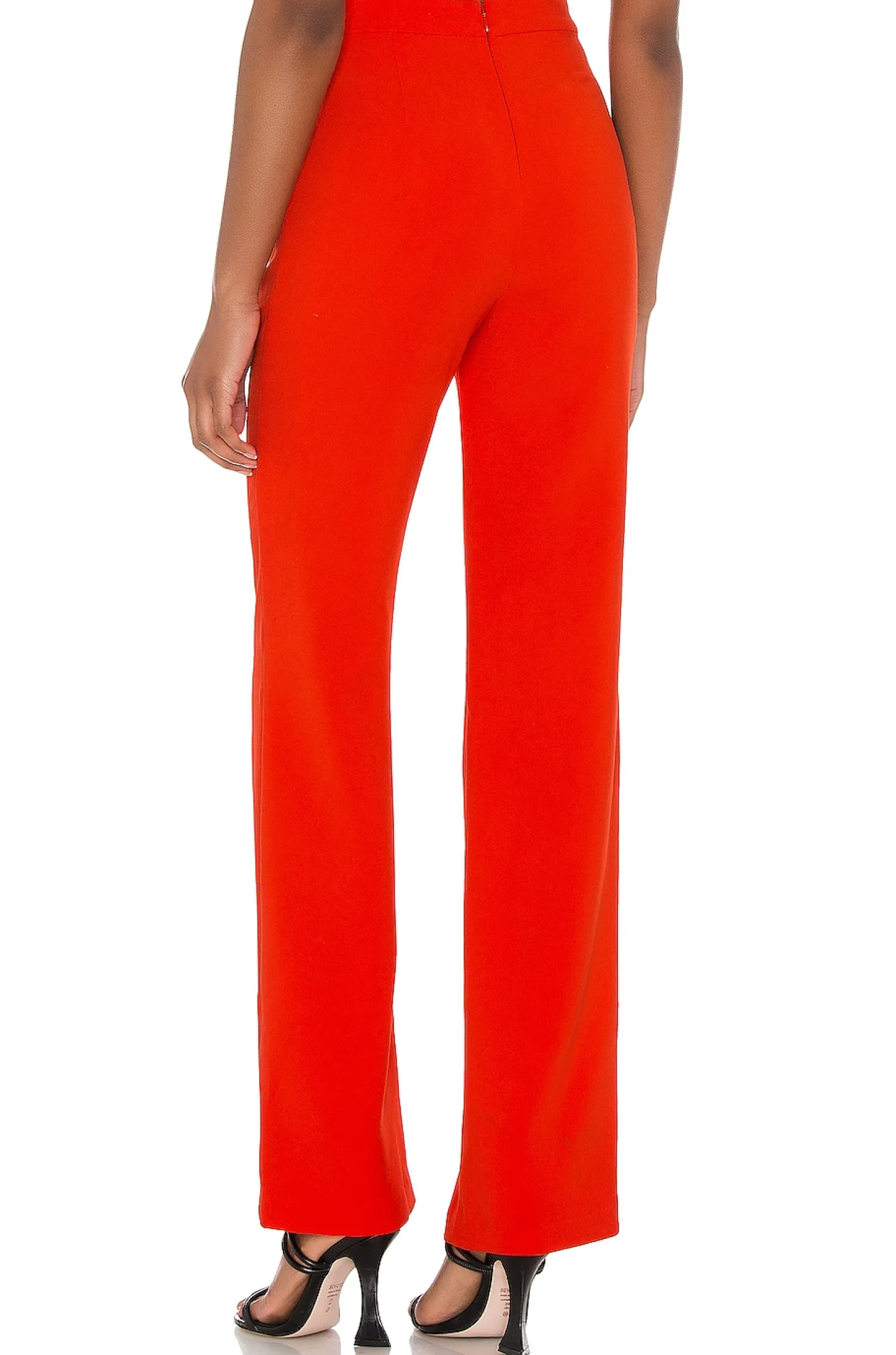 95% poly 5% elastane.Hand wash cold.Hidden back zipper closure.Side seam pockets.Crepe fabric.Item not sold as a set.16.5" at the knee and 16.5" at the leg opening.Imported