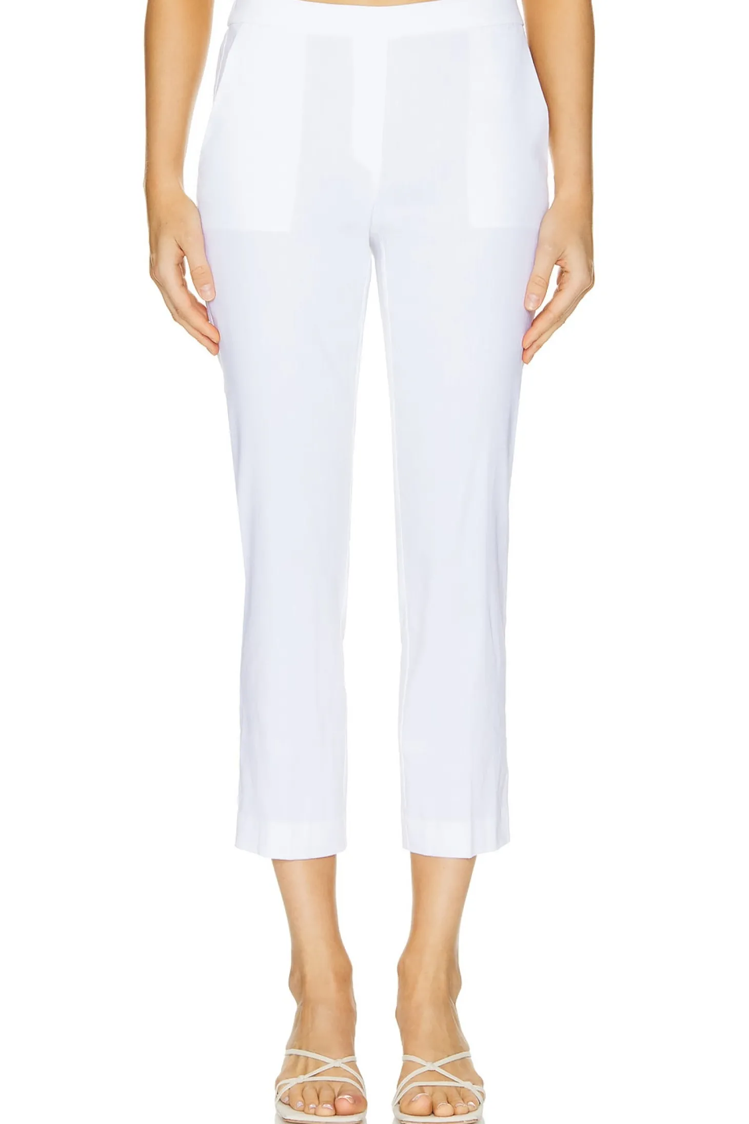 Self:66% linen 30% viscose 4% elastane Pocket lining: 69% cotton 27% nylon 4% elastane.Made in China.Dry clean.Unlined.Pull-on styling.14" at the knee narrows to 12" at the leg opening