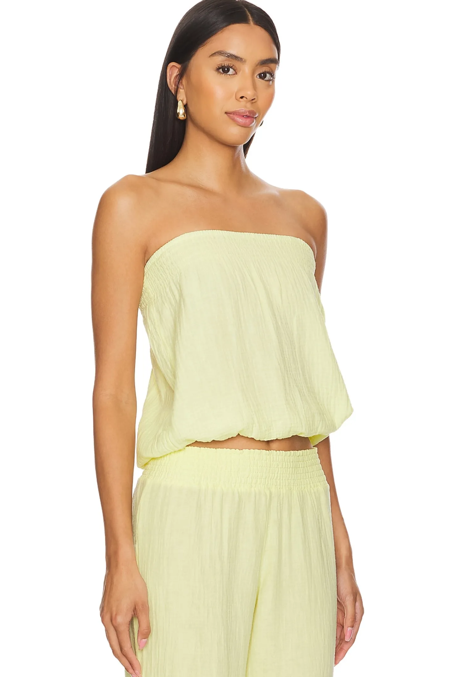 100% cotton.Made in China.Machine wash.Pull-on styling.Elastic neckline and waistband.Gauze fabric