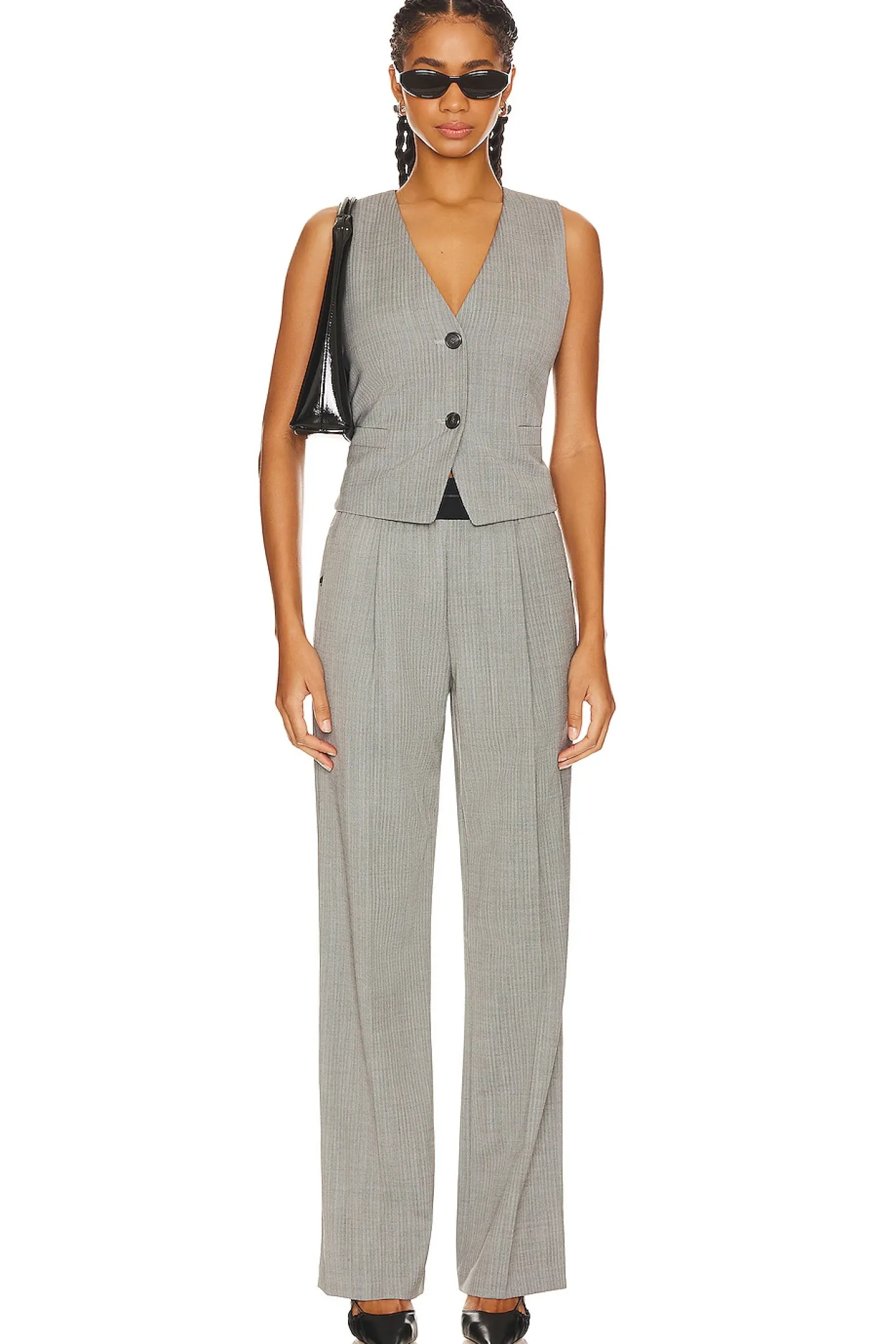 Self: 48% wool 48% polyester 4% elastane Lining: 100% polyester.Made in Vietnam.Dry clean only.Front button closure.Back cut-out with adjustable strap.Midweight suiting fabric.Item not sold as a set