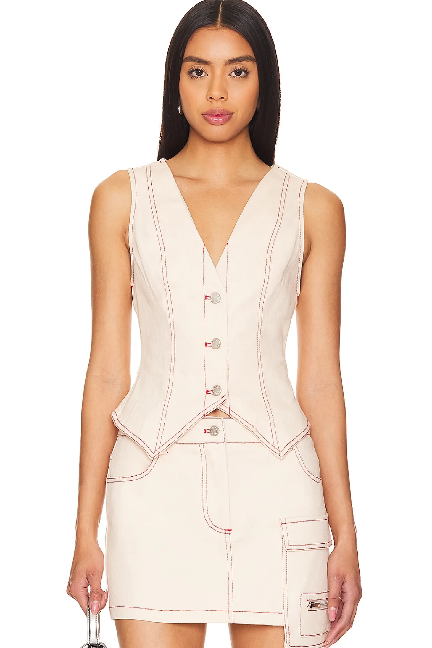 97% cotton 3% elastane.Made in China.Hand wash.Front button closure.Twill fabric.Item not sold as set