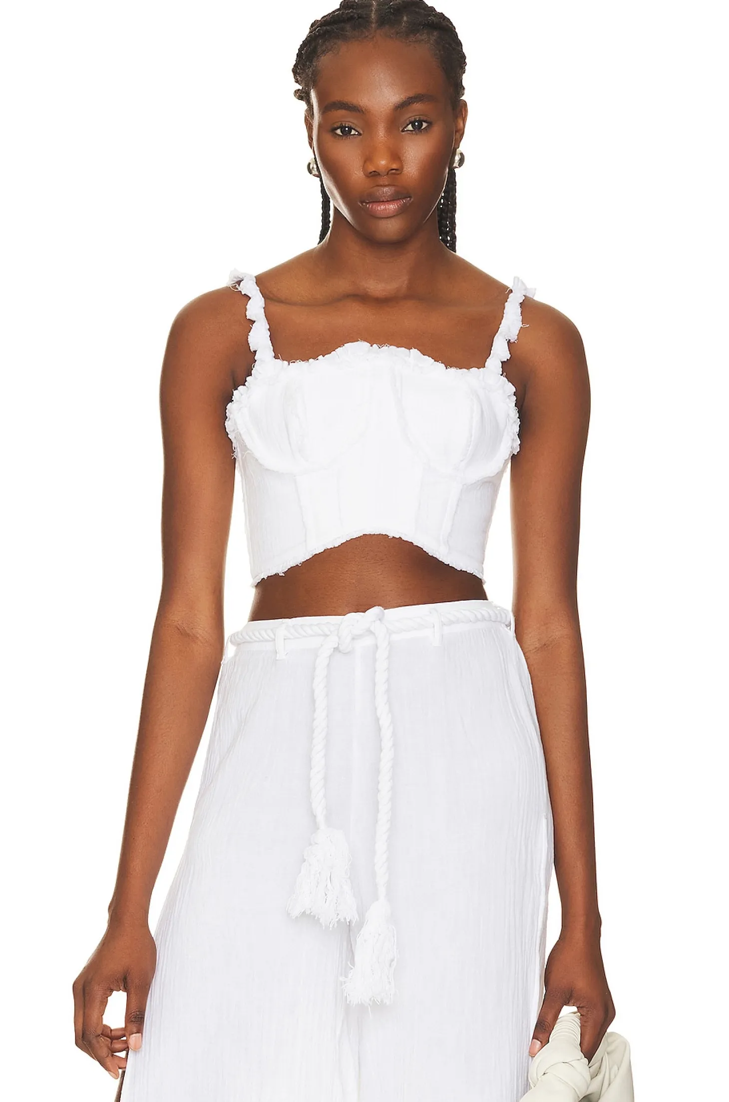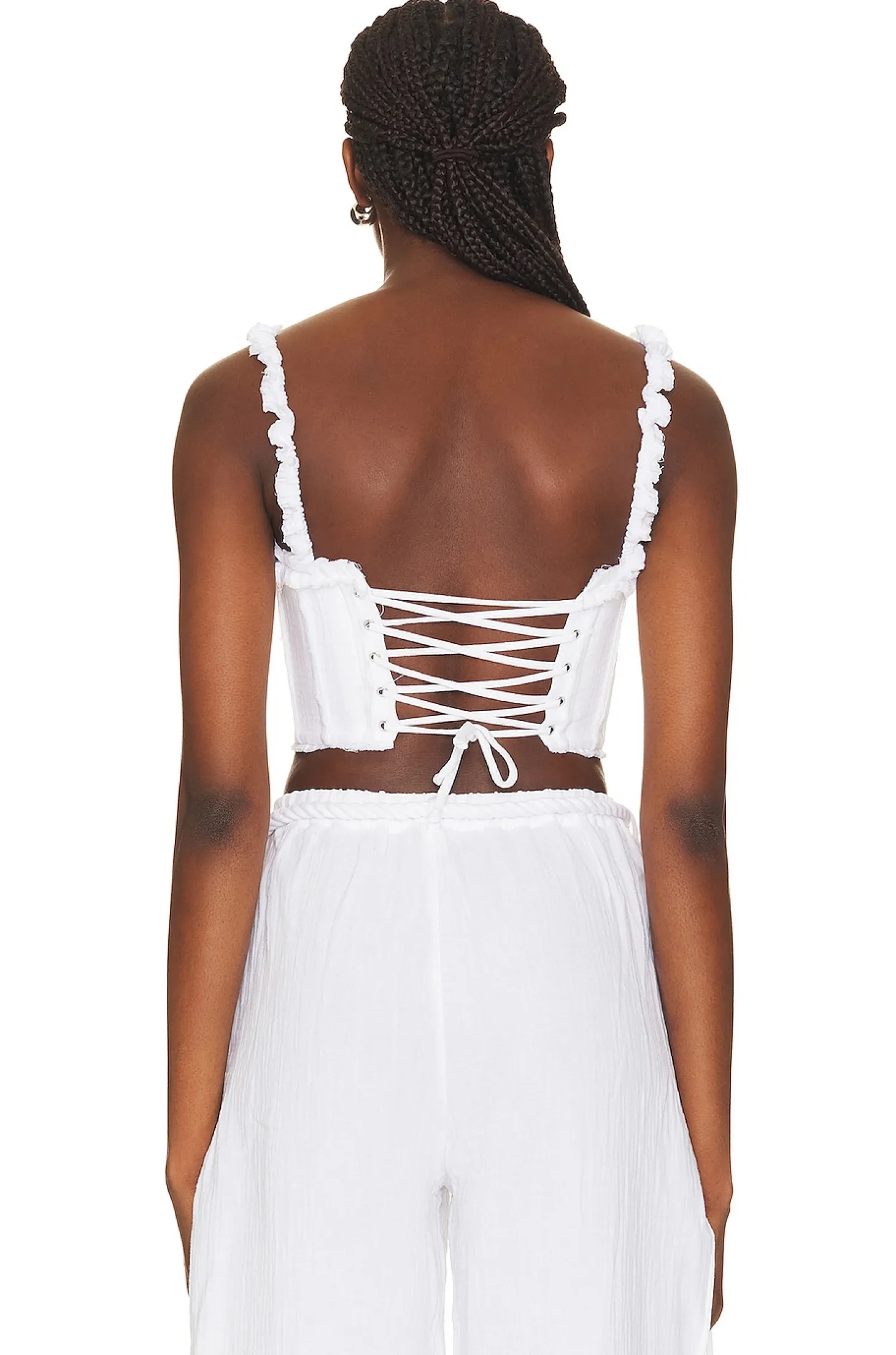 100% cotton.Made in China.Hand wash.Back lace-up tie closure.Boned bodice.Unpadded underwire bust.Ruffle trim