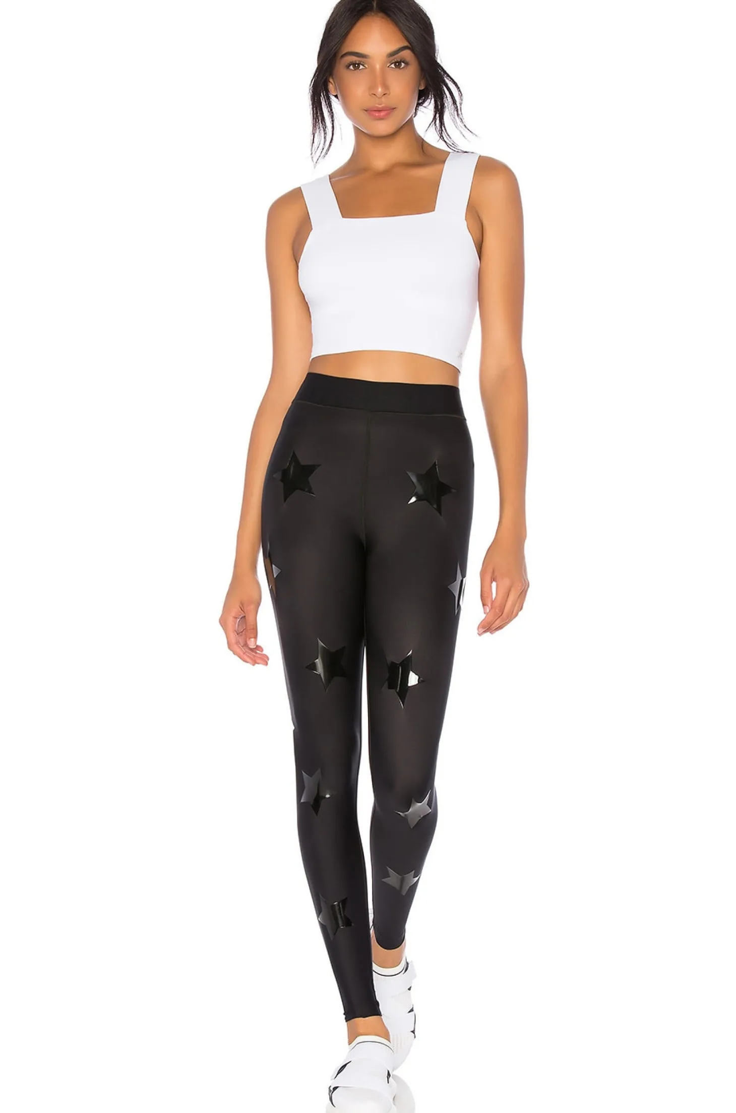 Self: 84% nylon 16% lycra Lining: 65% nylon 35% lycra.Elasticized waist.Built-in shapewear to provide an instant lift.Screen print graphic.Back logo detail.Raw cut hem.Stretch fit.Made in USA