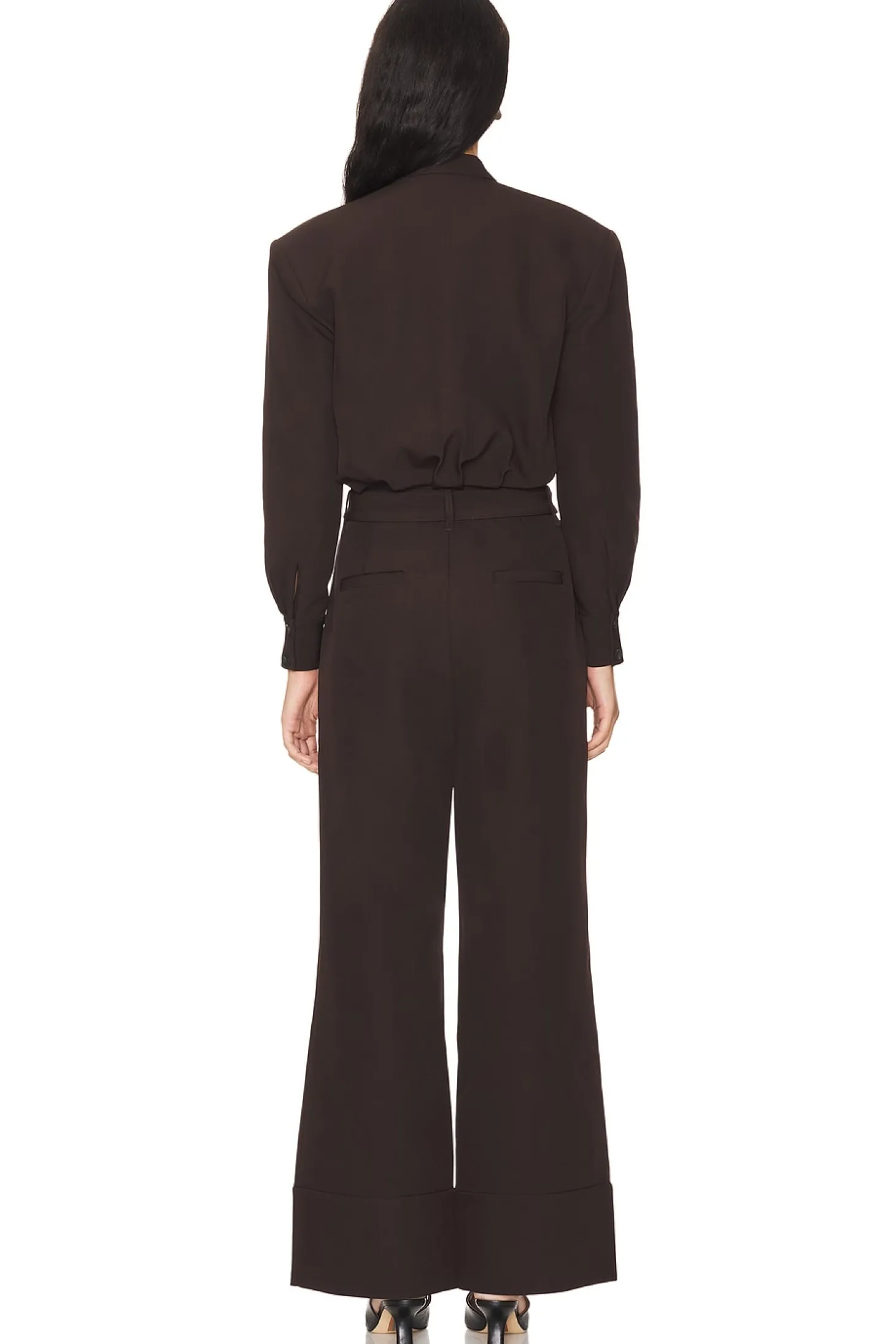 Self: 92% polyester 8% spandex Lining: 100% polyester.Made in China.Dry clean only.Exposed front zipper closure.Structured padding at shoulders and buttoned cuffs.Optional tonal belt at waist with clasp closure.5-pocket styling
