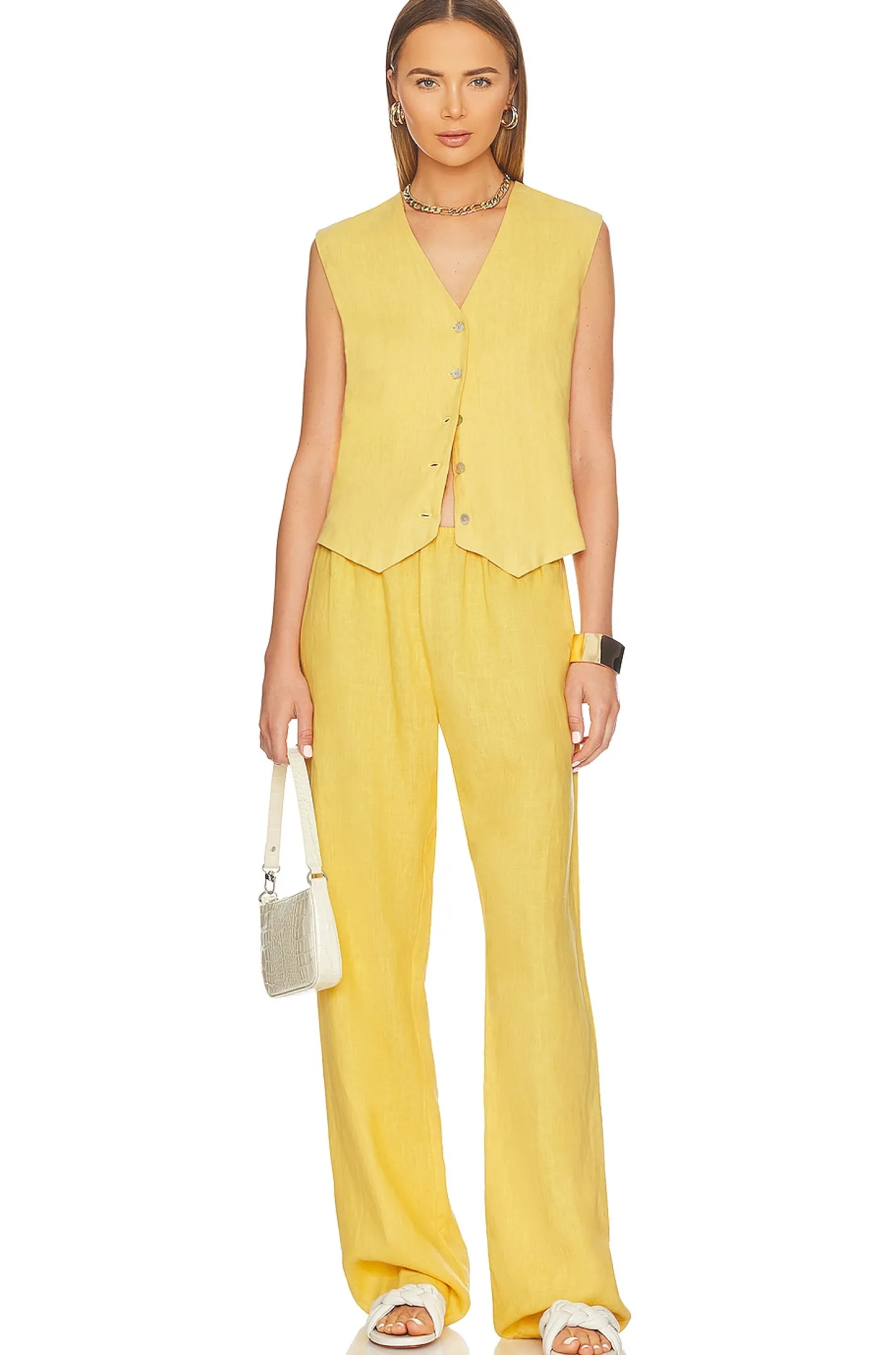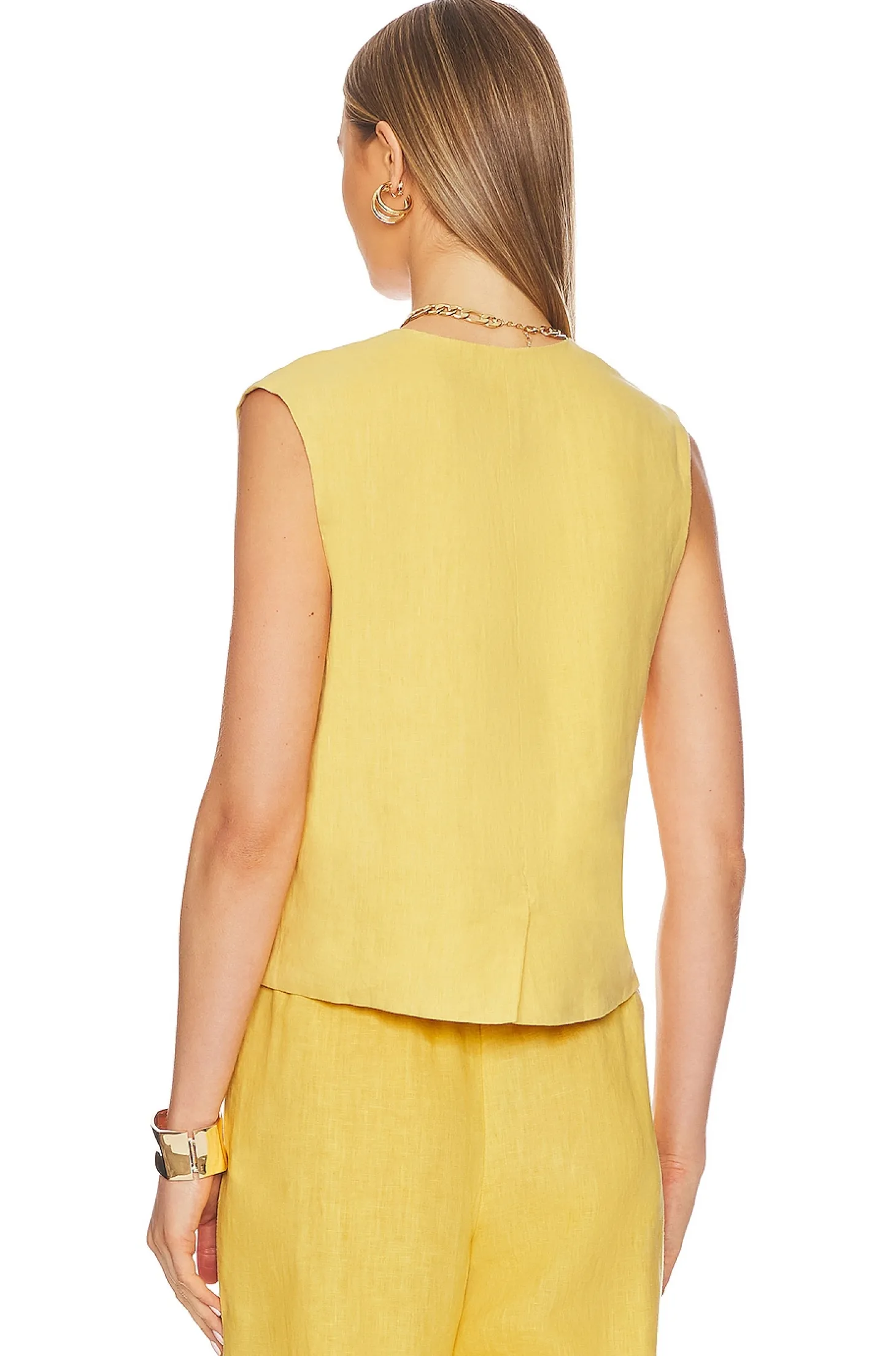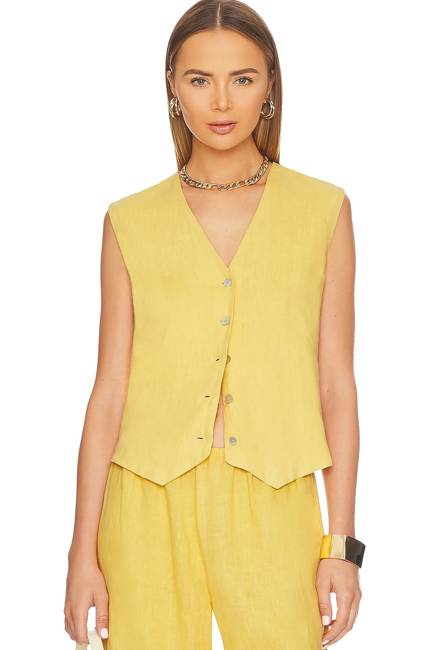 100% linen.Made in USA.Machine wash.Front button closure.Lightweight linen fabric with back vent.Item not sold as a set