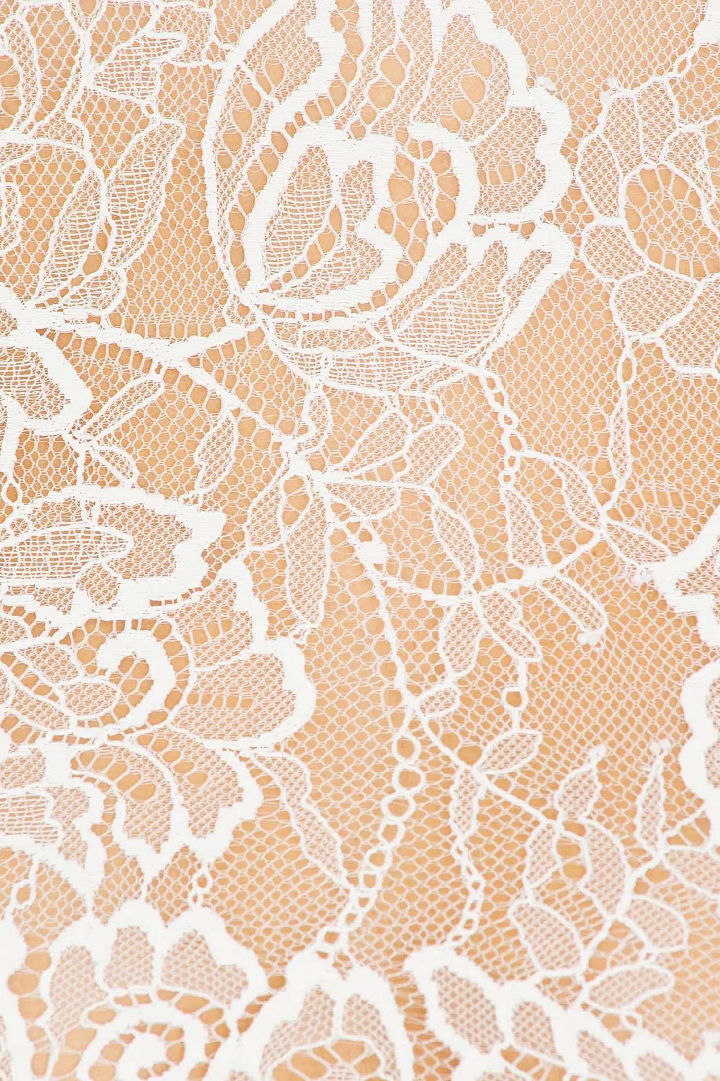 Self 1: 100% nylon Self 2: 95% silk 5% spandex.Made in China.Dry clean.Loop button closures at neckline and back.Lightweight sheer lace fabric.Item not sold as a set.Garment is intentionally sheer, undergarments will show through. Please note undergarment not included