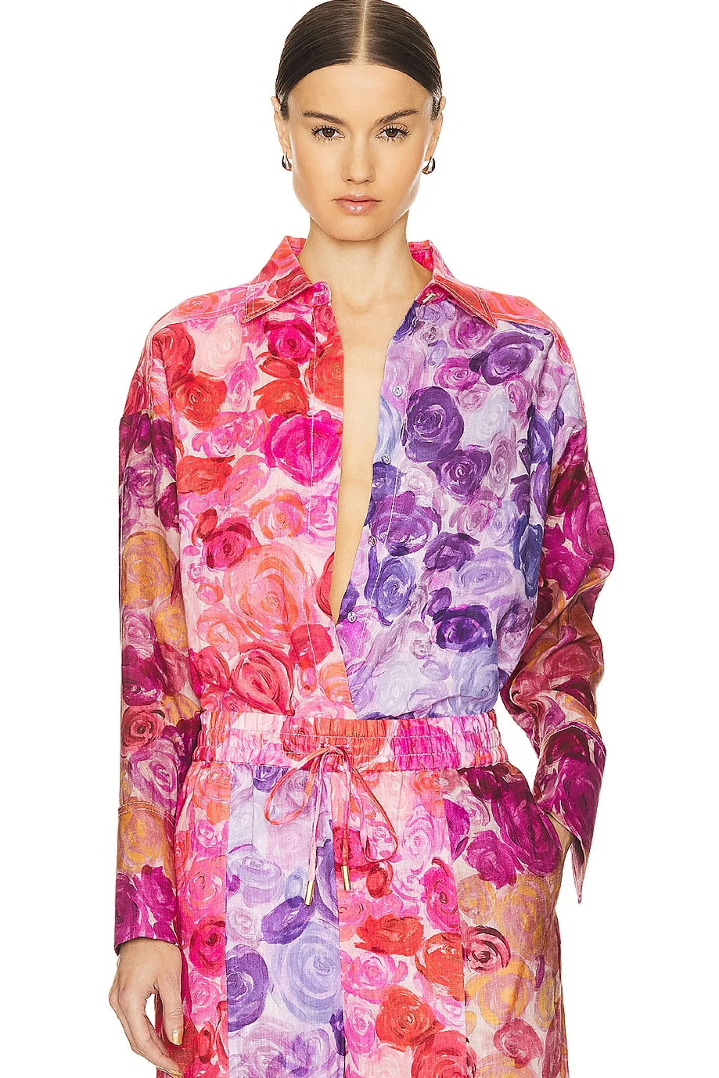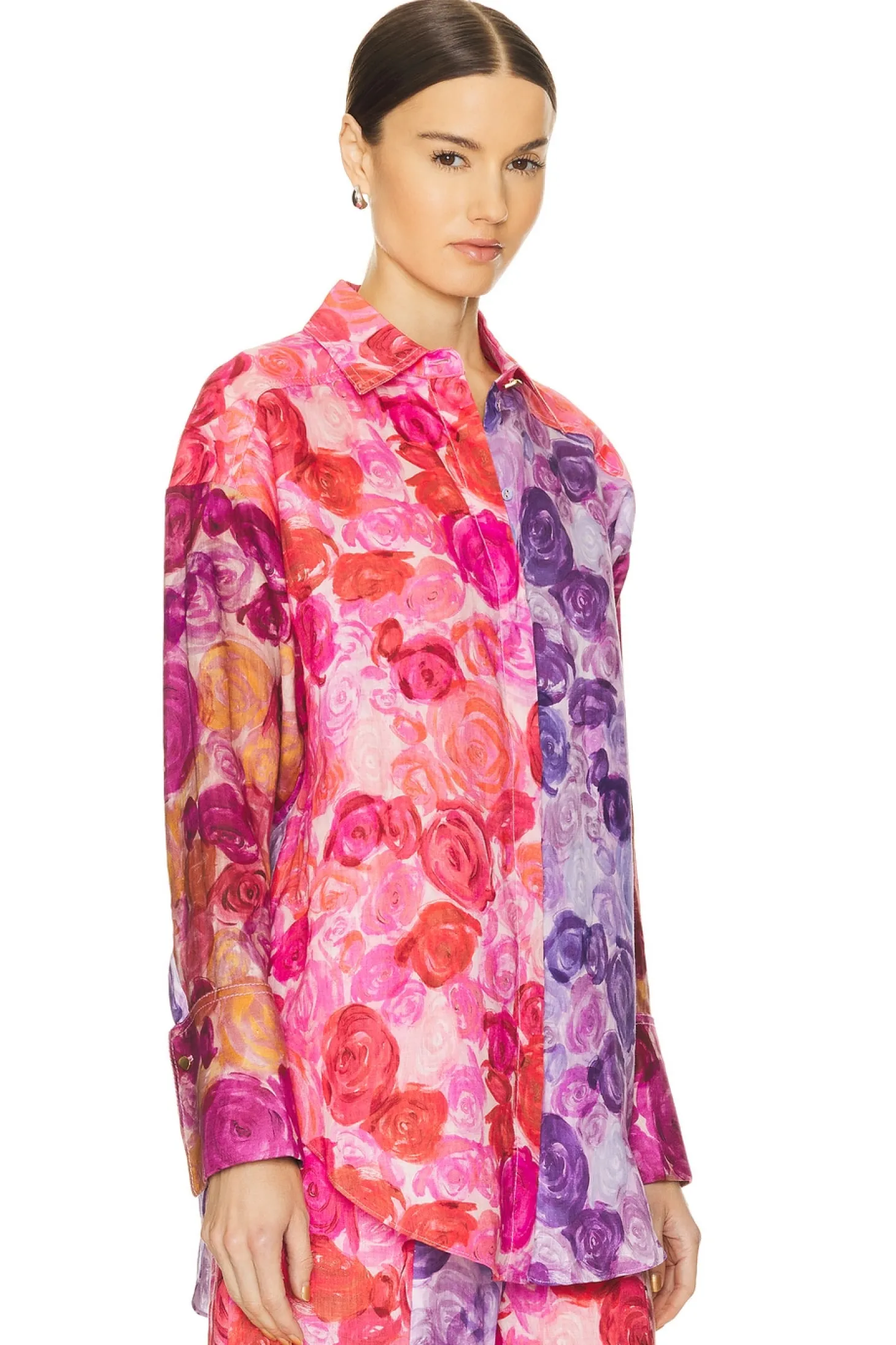 100% linen.Made in China.Hand wash.Front button closure.Button cuffs.Linen fabric.Item not sold as set
