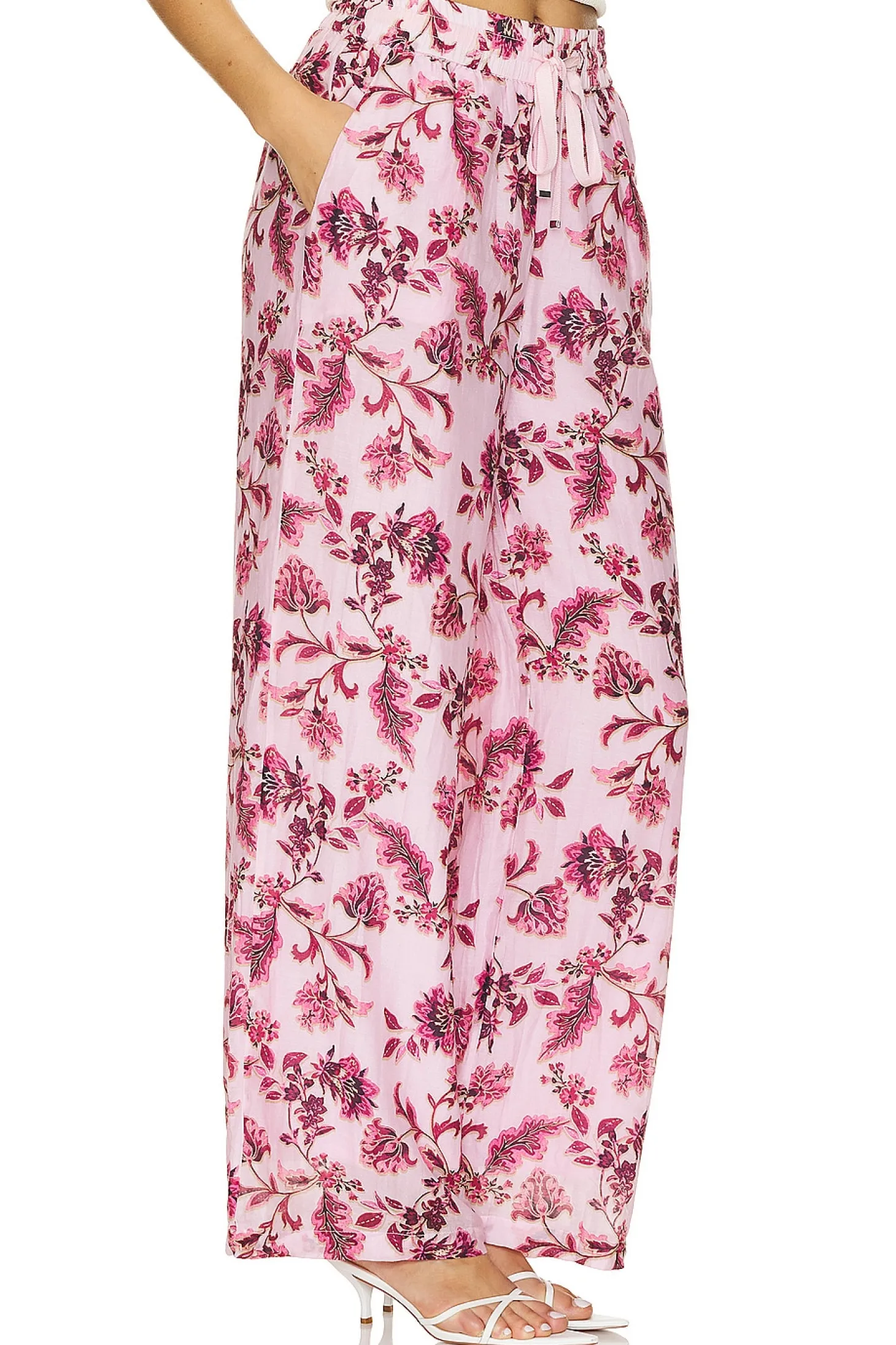 Self: 80% Cotton 20% Silk Lining: 52% viscose 48% Cotton.Made in India.Dry clean only.23" at the knee and to 23" at the leg opening