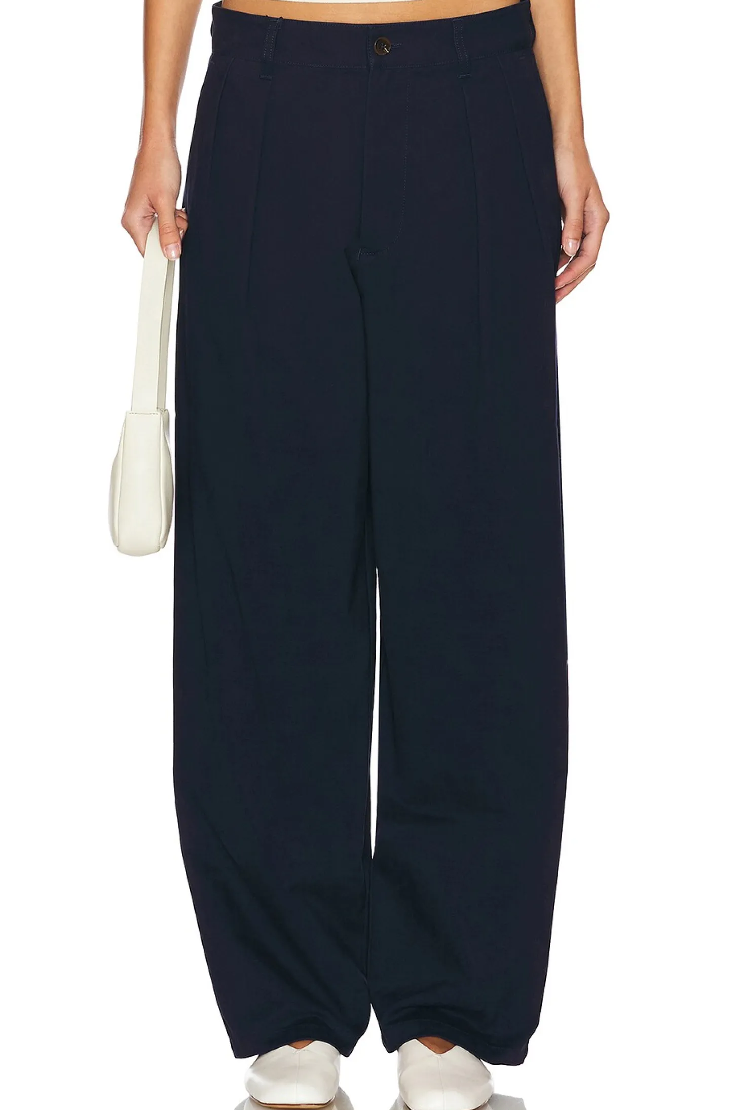 100% cotton.Made in China.Dry clean only.Zip fly with button closure.4-pocket design.Front pintuck detail.Midweight twill fabric.20" at the knee narrows to 16" at the leg opening