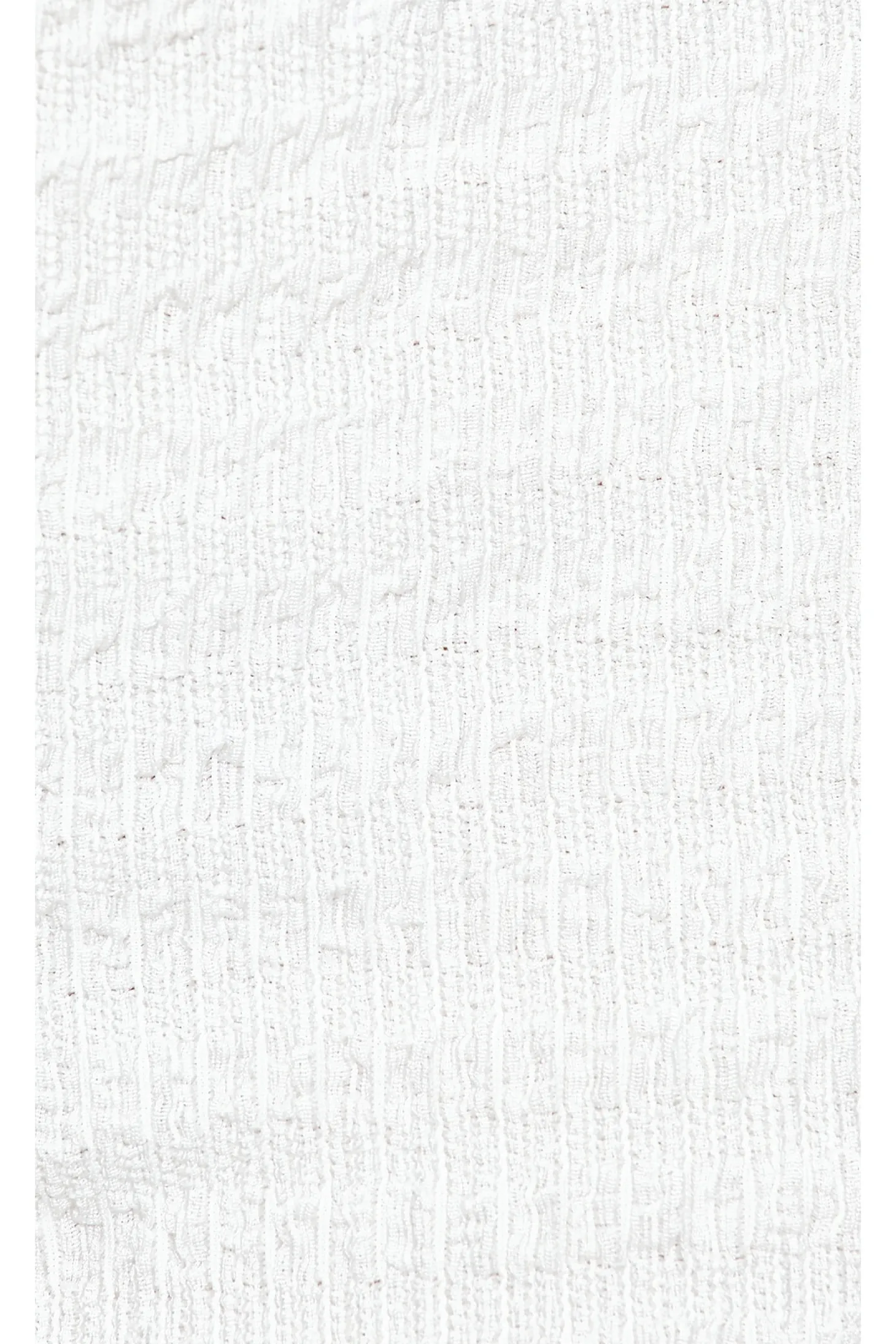 97% polyester 3% elastane.Made in China.Hand wash.Pull-on styling.Garment is made with a semi-sheer fabric, undergarments can show through.Shorts measure approx 9.5" in length