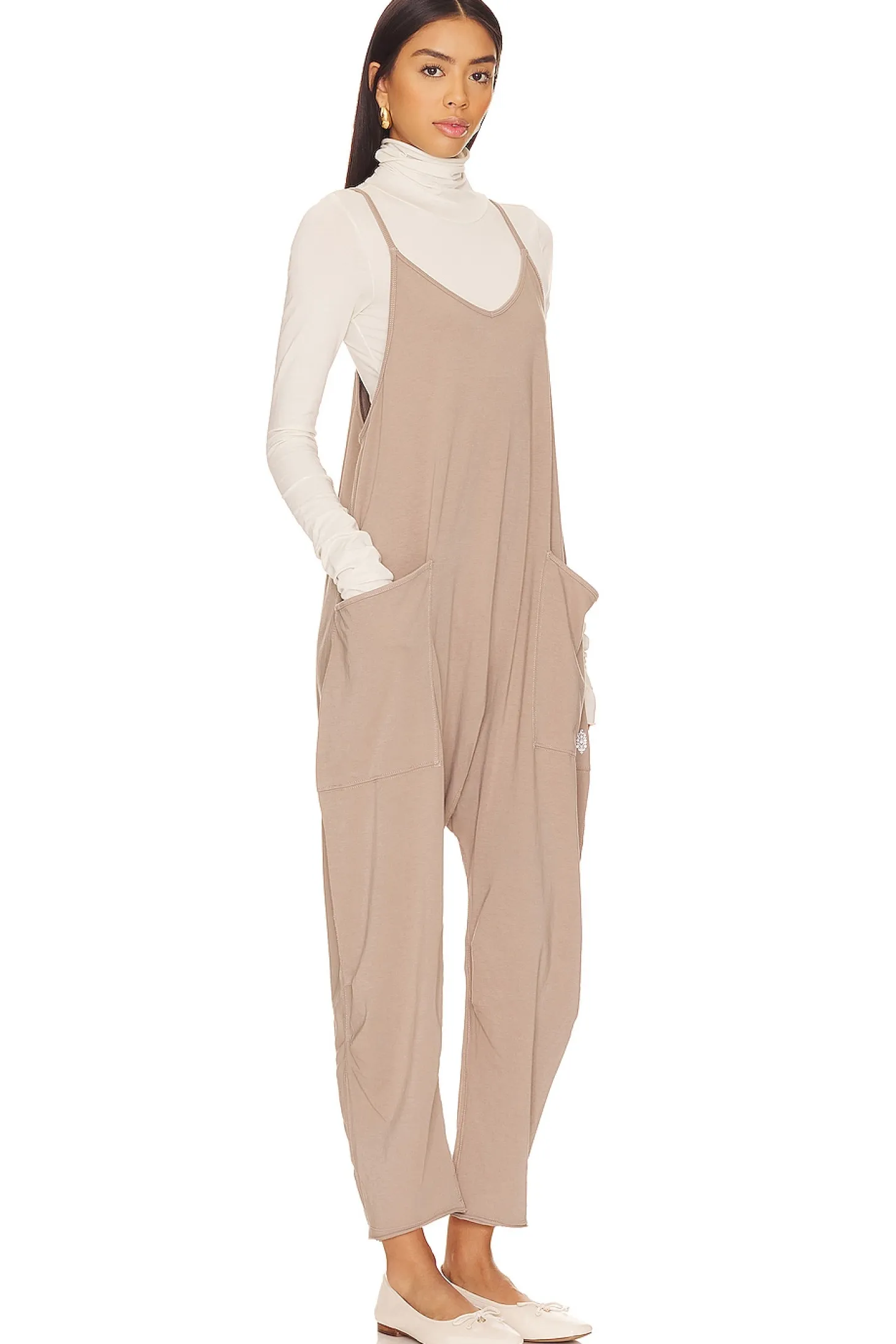 Meet the Free People X FP Movement Hot Shot Onesie in Mocha Latte. Crafted in a soft taupe hue, it's versatile for both workout sessions and casual outings. The onesie design offers a trendy look while providing the comfort and flexibility you need for any active day..95% cotton 5% elastane.Made in Indonesia.Hand wash.Pull-on styling.Front slip pockets Exposed back zipper pocket.Lightweight jersey fabric with rolled raw-cut hem