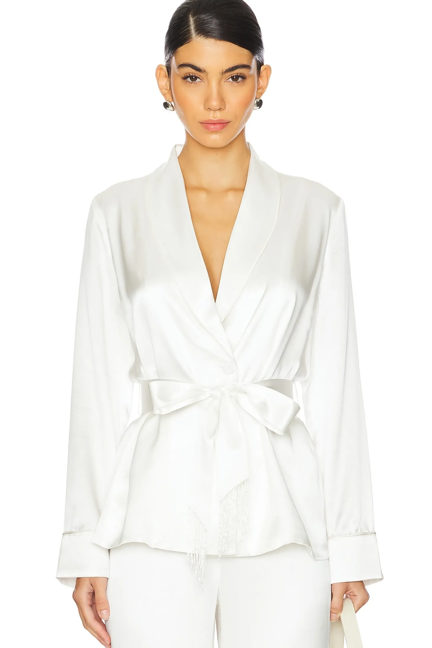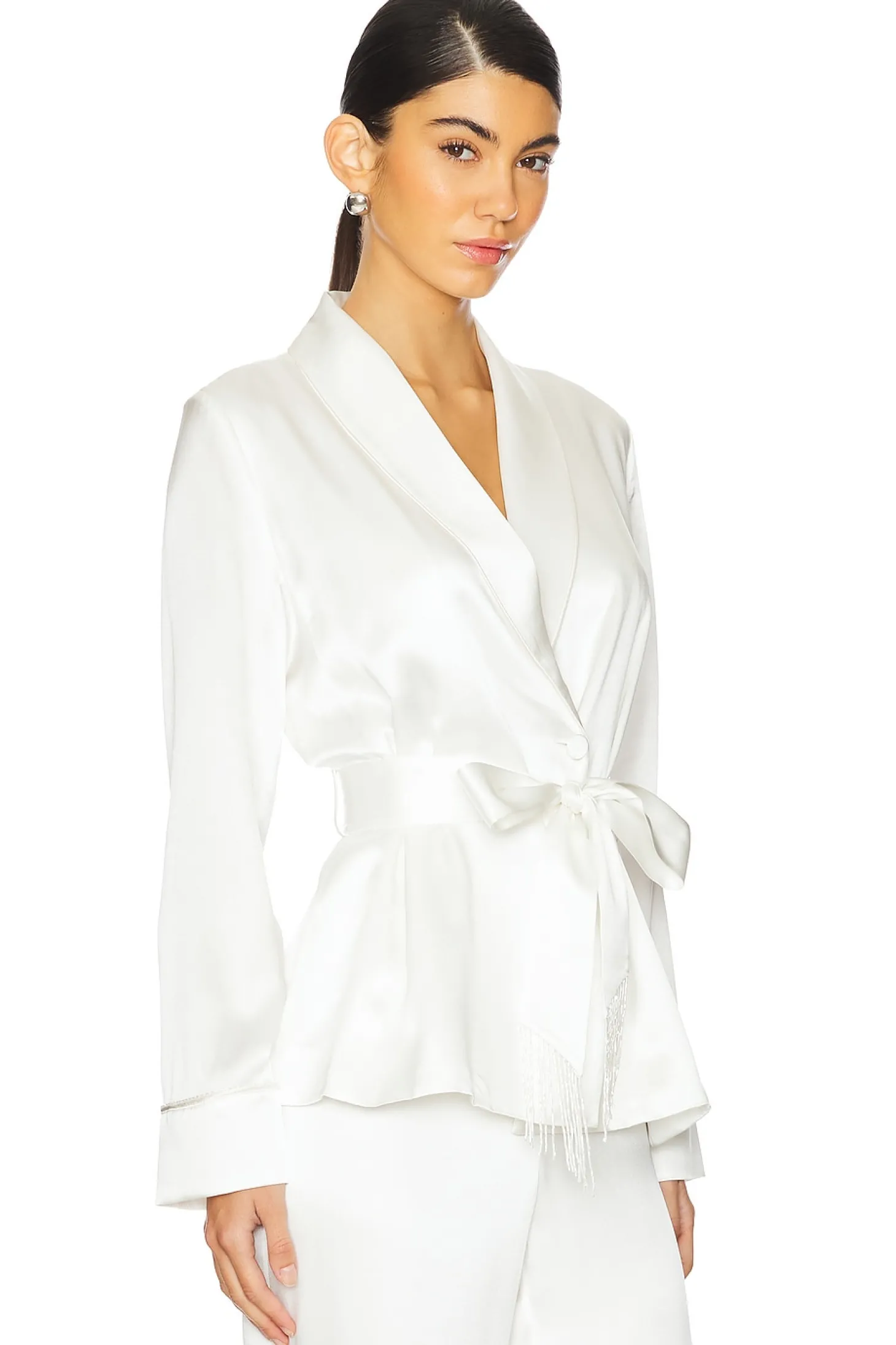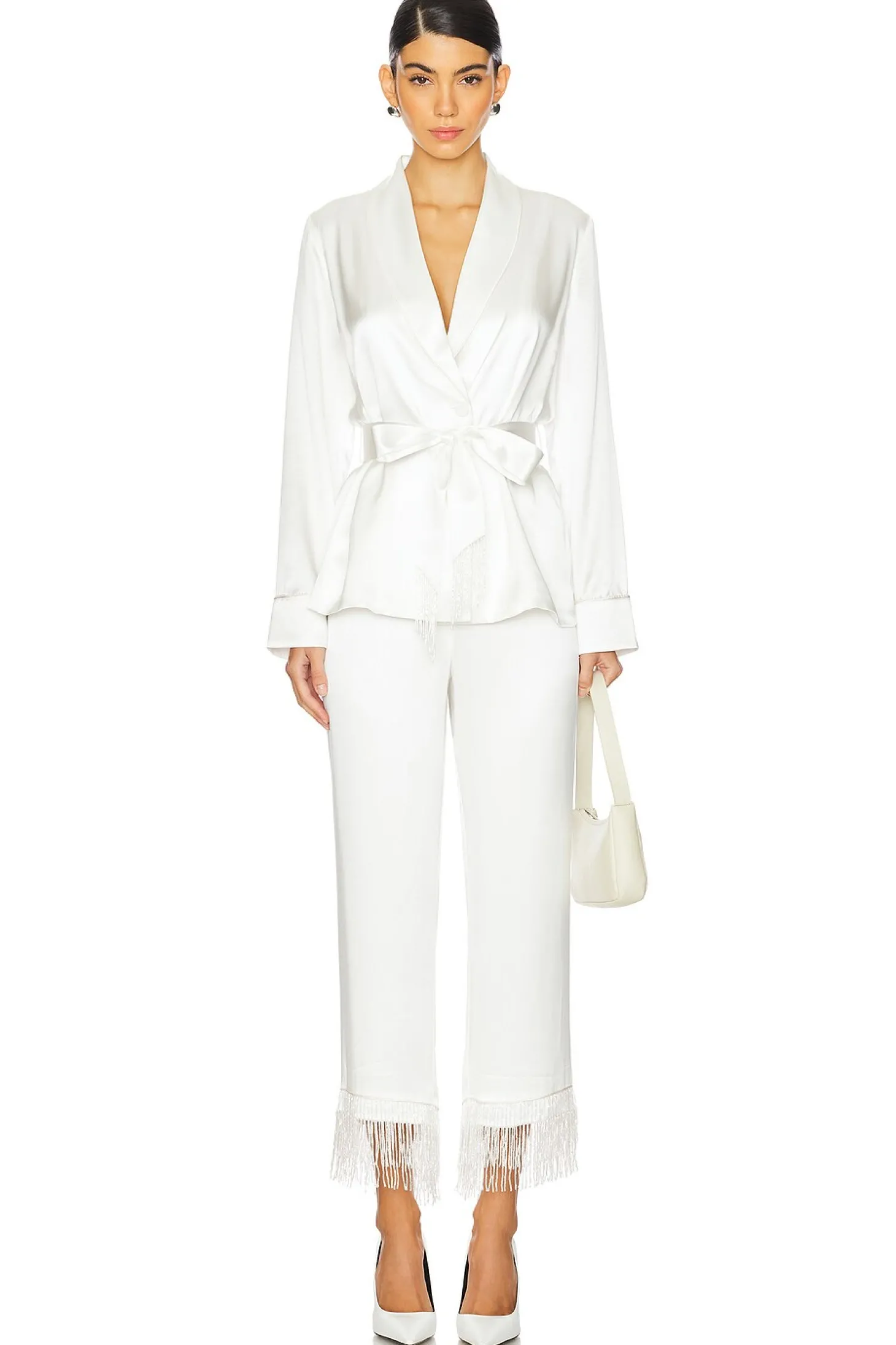 x Galia Lahav Beaded Fringe Silk Smoking Jacket