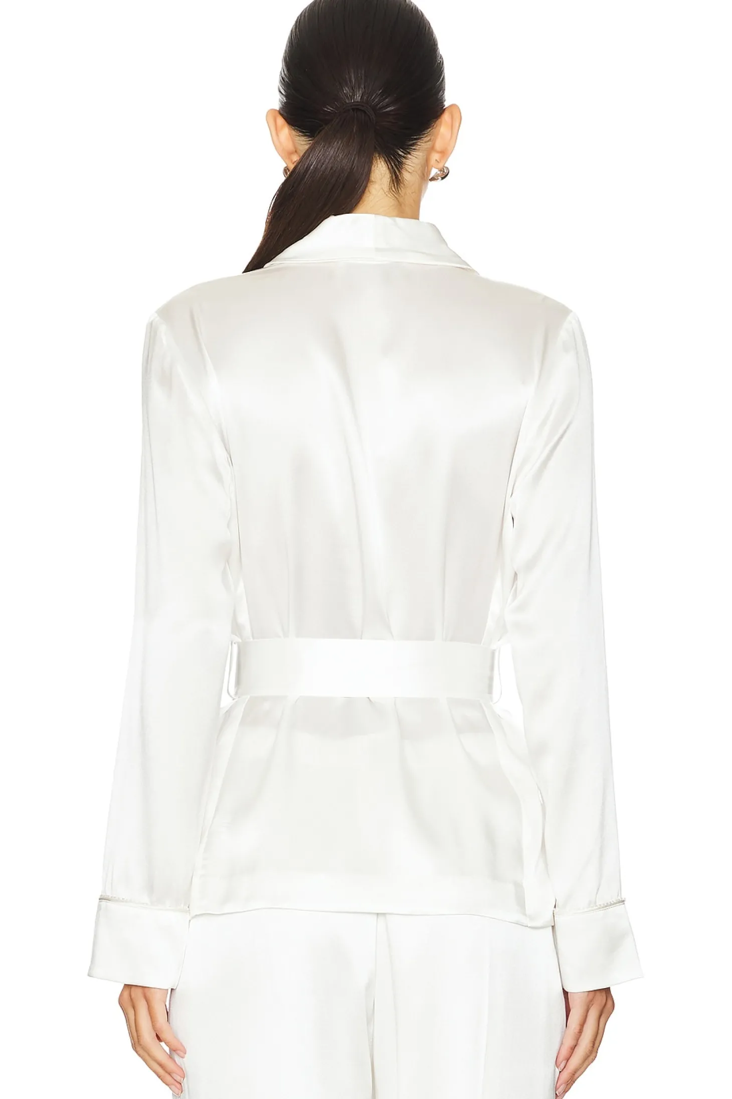 100% silk.Made in China.Dry clean only.Open style with single button closure.Optional waist tie.Lightweight satin fabric.Item not sold as a set