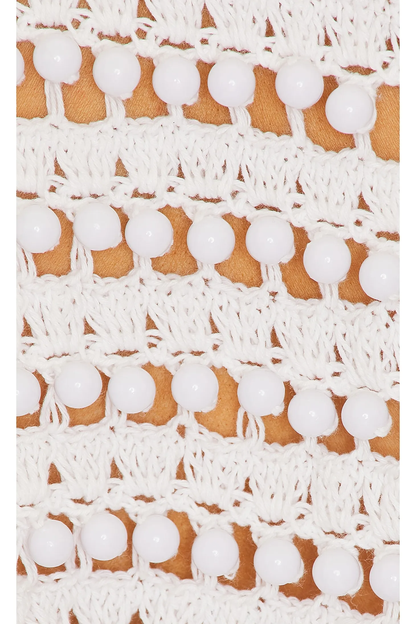 100% cotton .Made in Indonesia.Hand wash cold.Midweight open knit fabric with bead embellishments.Item not sold as a set