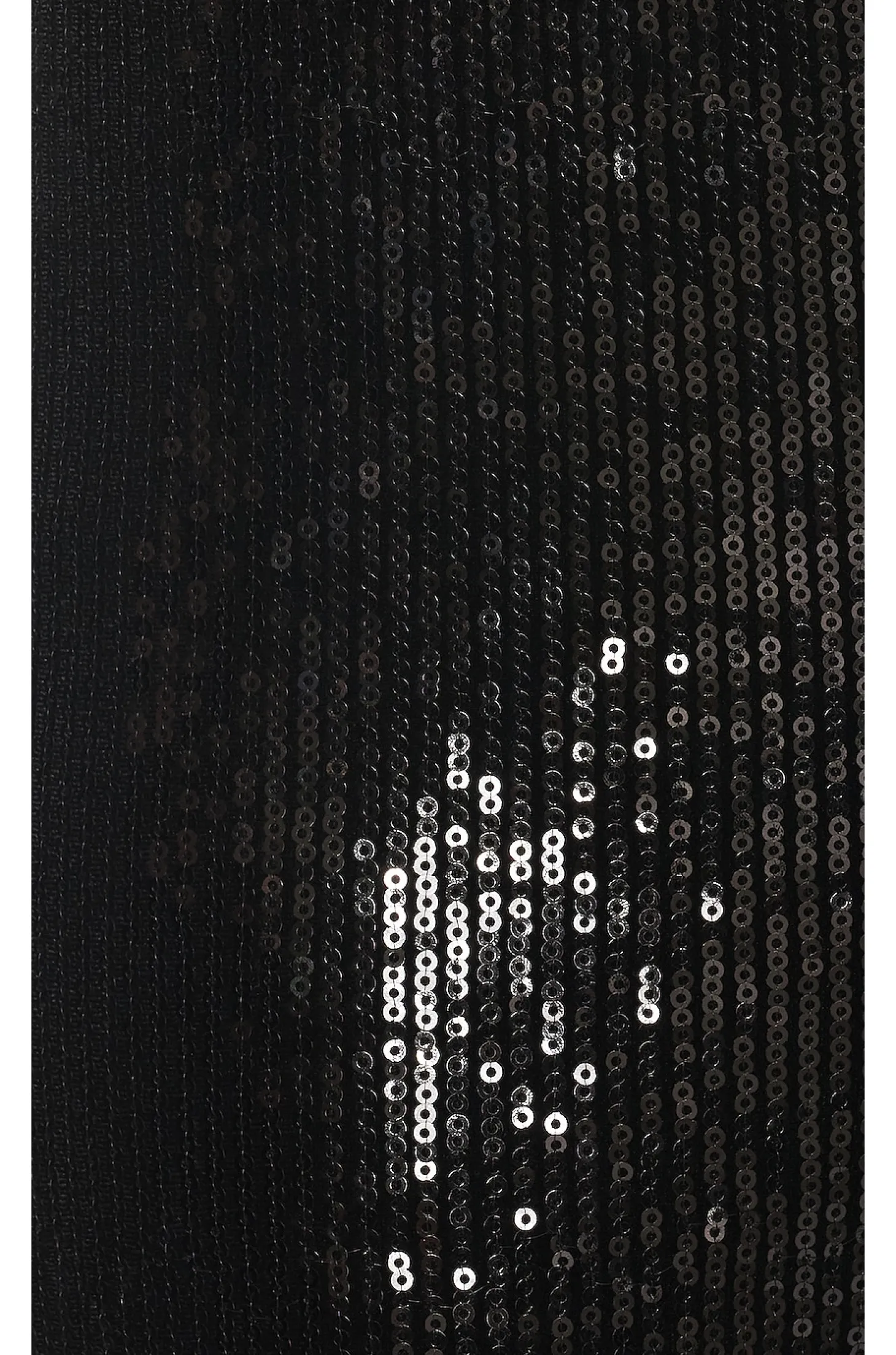 Self: 95% polyester 5% spandex Ground with: 100% pet sequins Lining: 82% nylon 18% spandex.Made in China.Hand wash.Hidden back zipper closure.V-wire front.Sequined embellishments throughout.Neckline to hem measures approx 51" in length 15" at the knee breaks to 18" at the leg opening