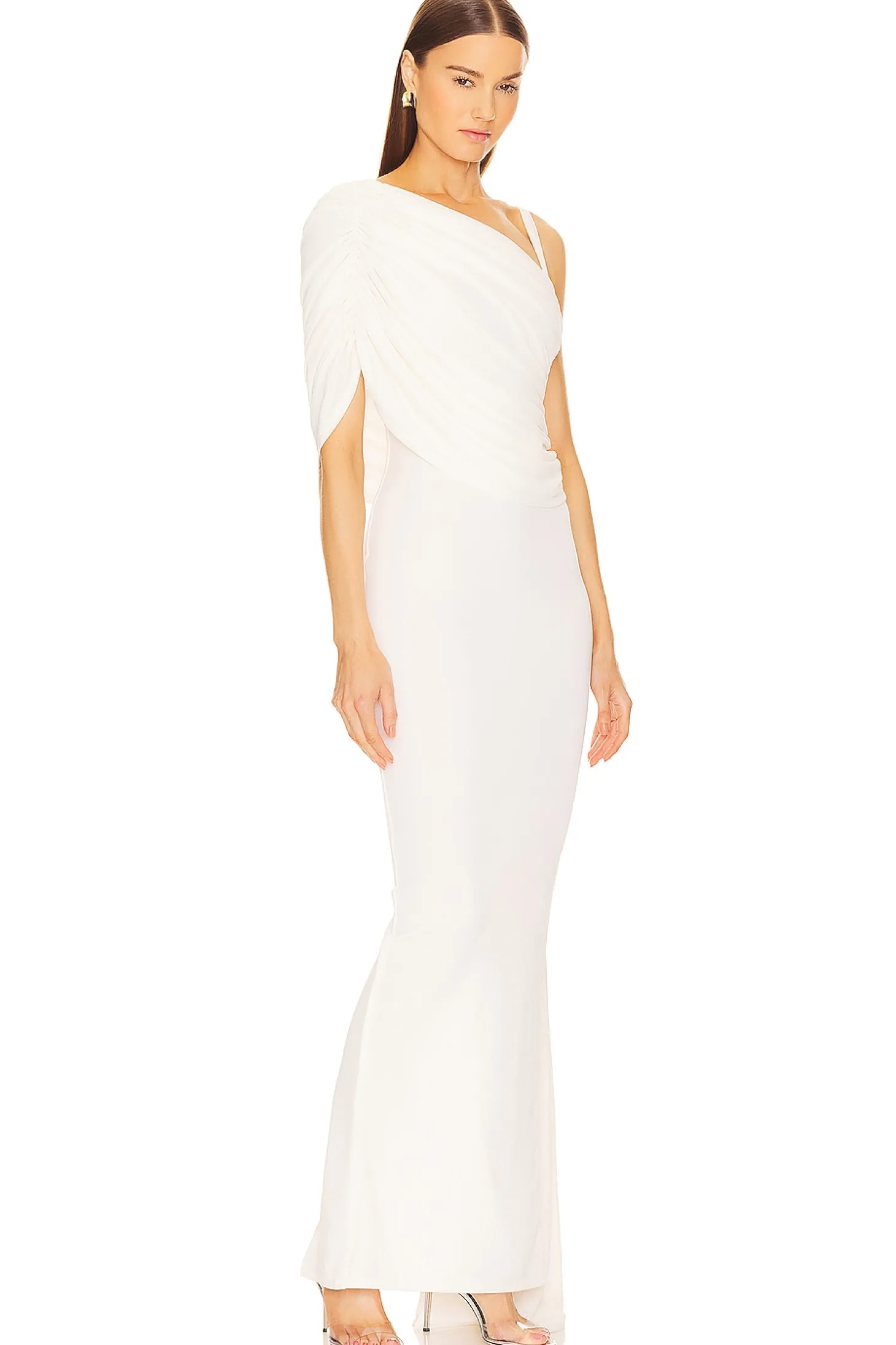 Make a striking entrance in the Michael Costello x REVOLVE Laurence Gown. This stunning piece features an elegant one-shoulder design with a draped fabric overlay, adding a touch of drama to your look. The ruched mesh jersey fabric provides a flattering fit that hugs your curves in all the right places..Self: 95% polyester 5% elastane Lining: 92% polyester 8% elastane.Made in China.Hand wash.Fully lined.Hidden side zipper closure.One shoulder styling with draped fabric overlay Ruched mesh jersey fabric