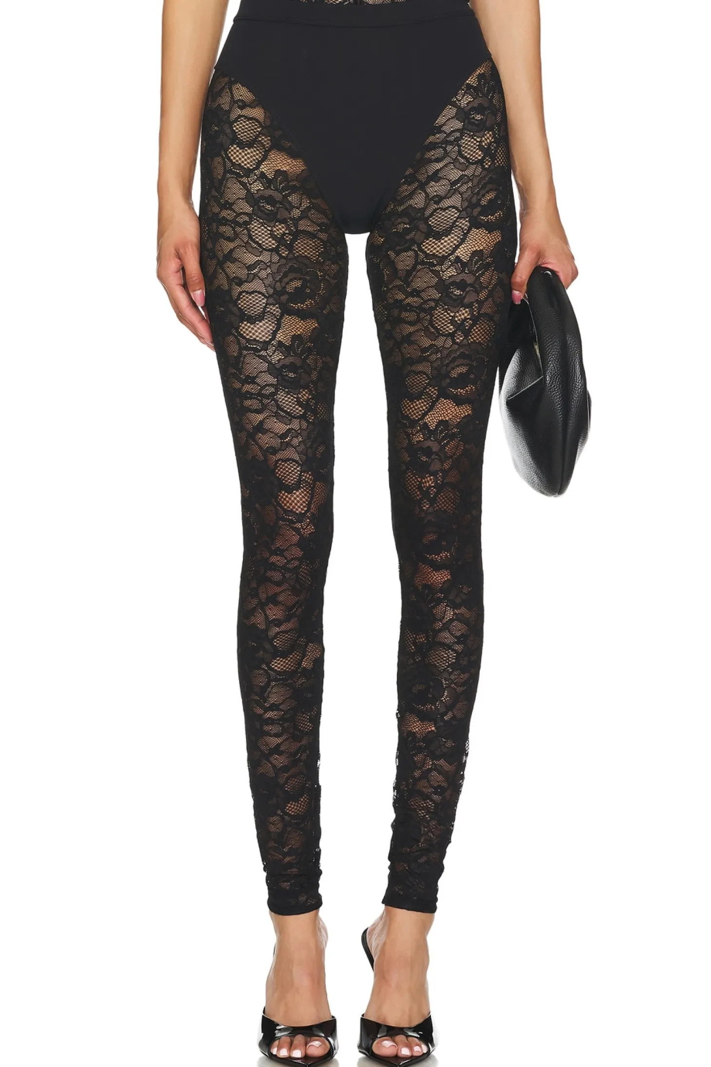 Self: 74% polyamide 26% elastane Lace: 88% polyamide 12% elastane.Made in China.Hand wash.Pull-on styling.13" at the knee narrows to 8" at the leg opening